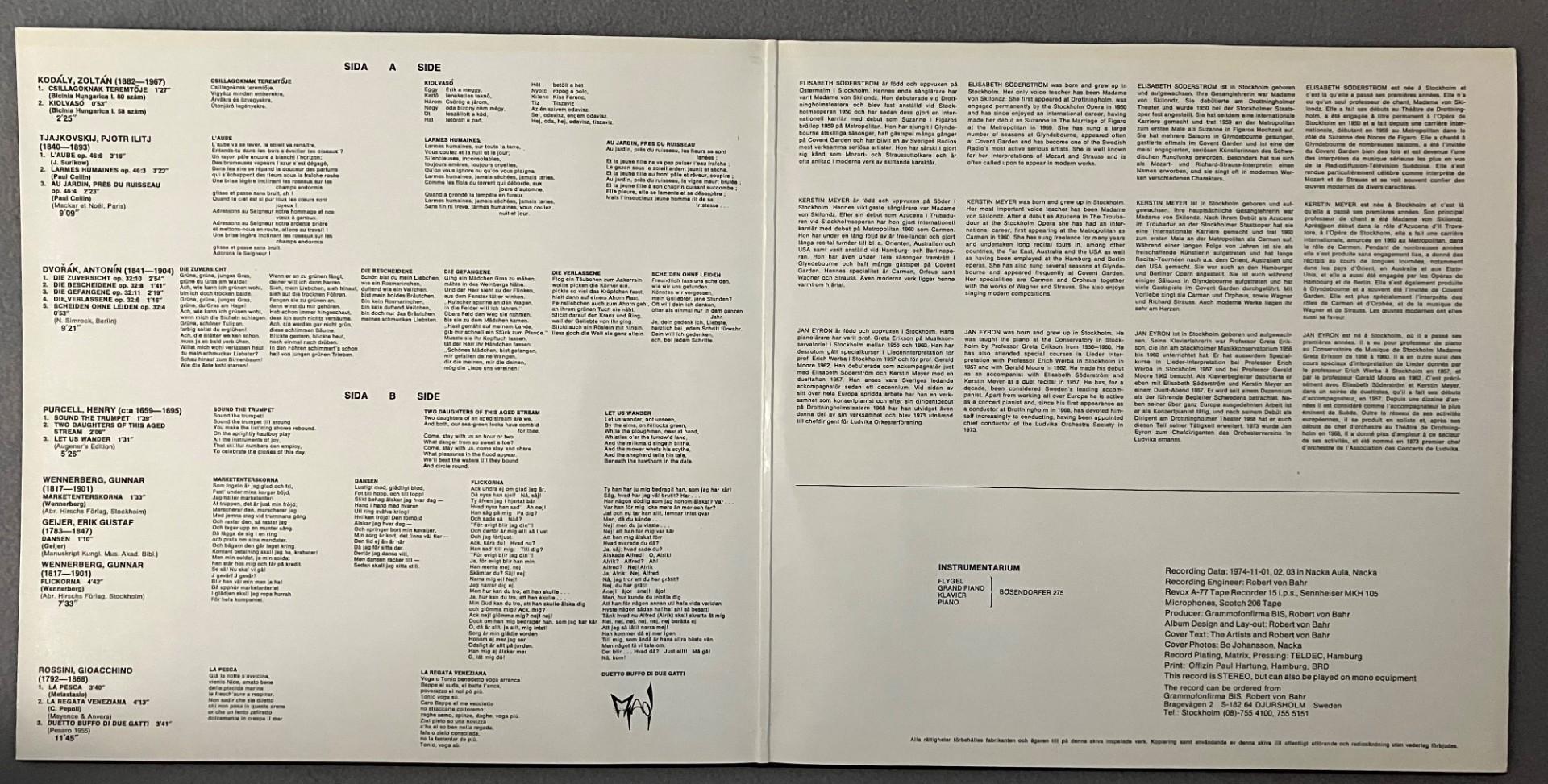 M676 Söderström Meyer Kodaly Tchaikovsky Dvorak Eyron Piano BIS LP-17 Stereo