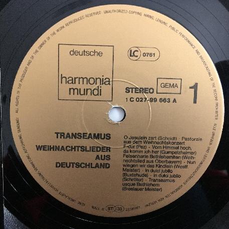 P459 Transeamus Christmas Songs from Germany Ameling HM 1C 027-99 663 Stereo