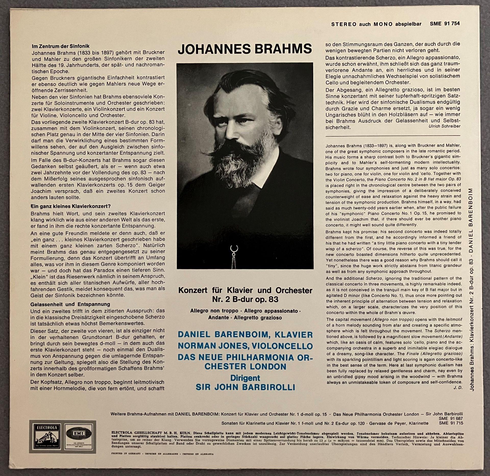M684 Brahms Piano Concerto No.2 Barenboim Barbirolli EMI SME 91 754 Stereo