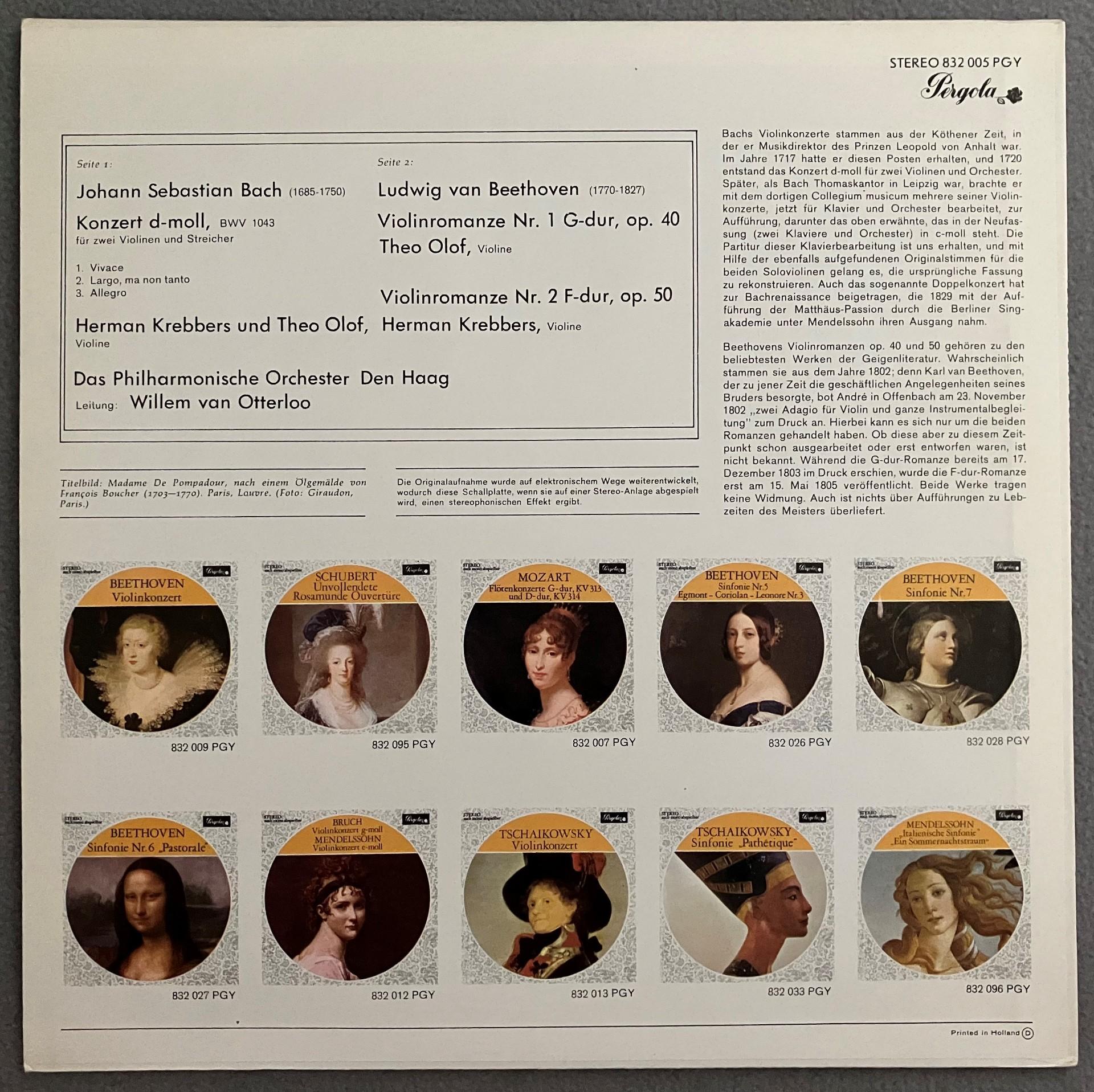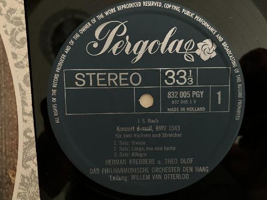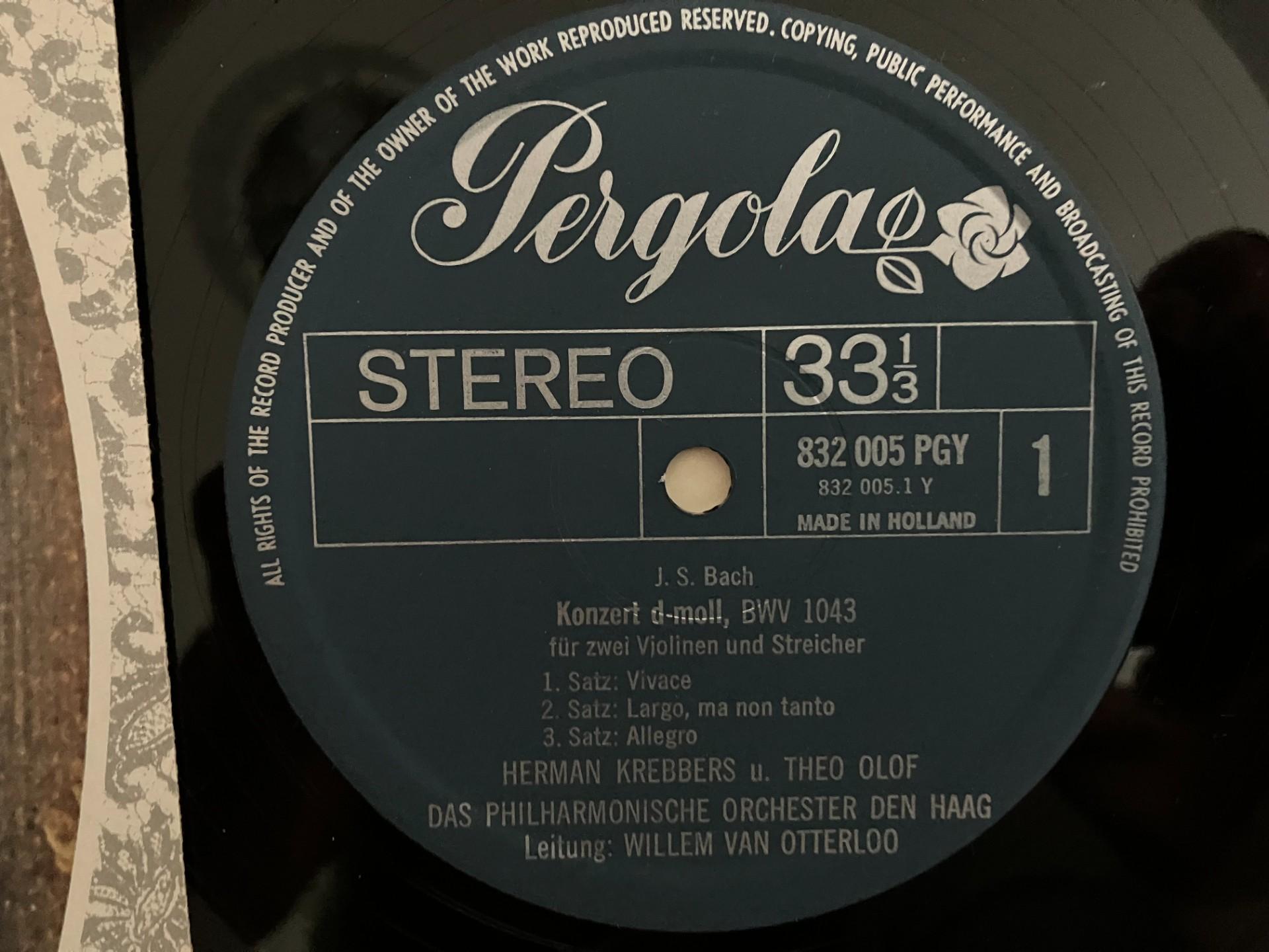 M693 Bach Violin Concerto Krebbers Olof Otterloo Pergola 832 005 PGY Stereo