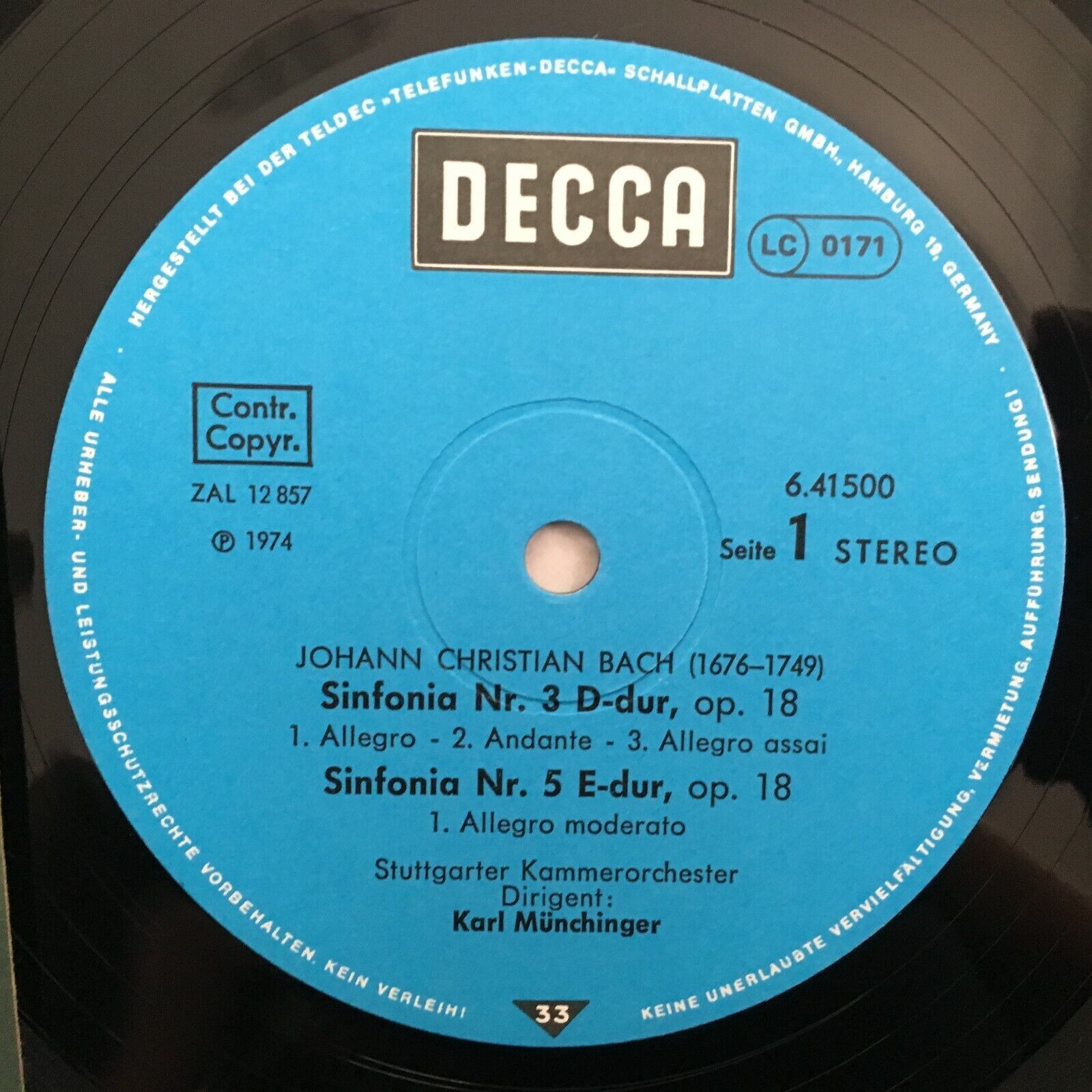 P470 J.C. Bach Symphonies No.3 & No.5 & No.1 Munchinger DECCA 6.41500 AW Stereo