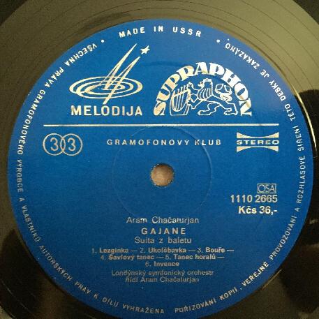 P487 Khachaturian Spartacus Gajane Supraphon 1110 2665 Stereo