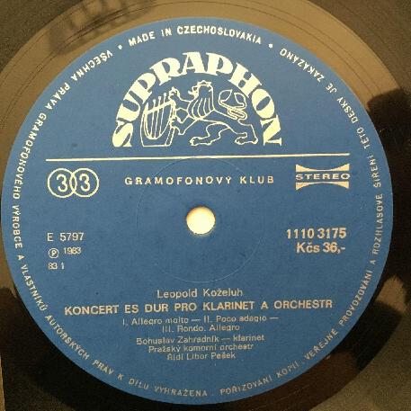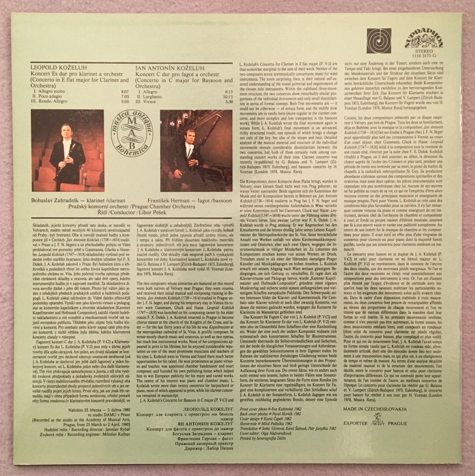 P495 L. & J.A. Kozeluh Clarinet Bassoon Concertos Pesek Supraphon 1110 3175 G St