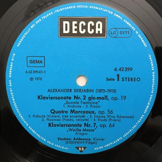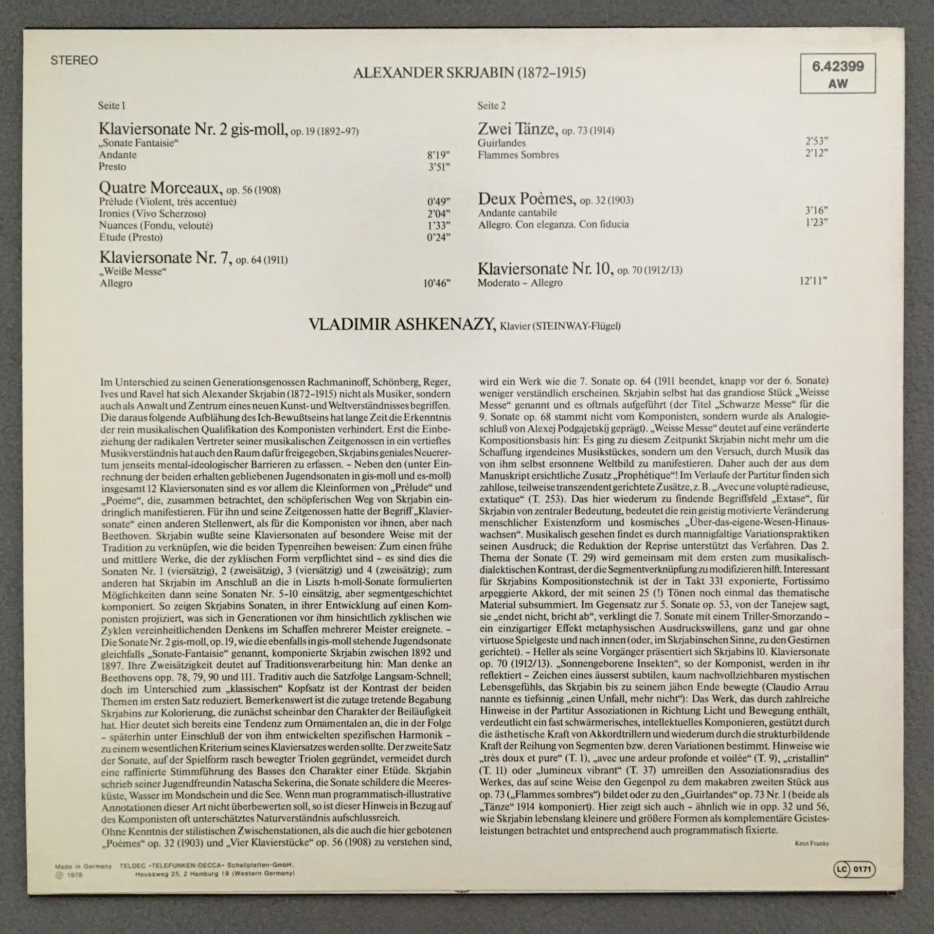 M723 Skrjabin Piano Sonatas Piano Works Ashkenazy DECCA 6.42399 AW Stereo