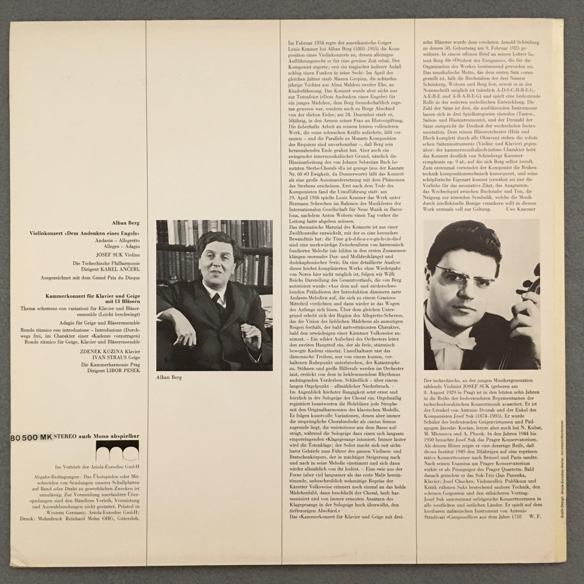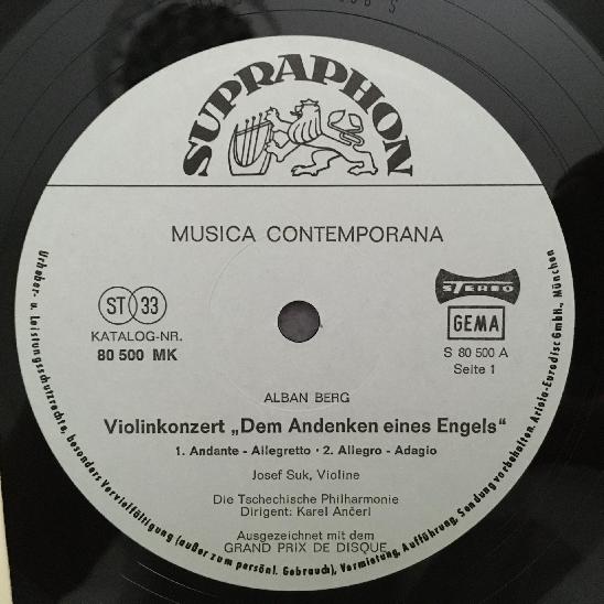 M726 Berg Violin Concerto Suk Ancerl Chamber Concerto Supraphon 80 500 PK Ster