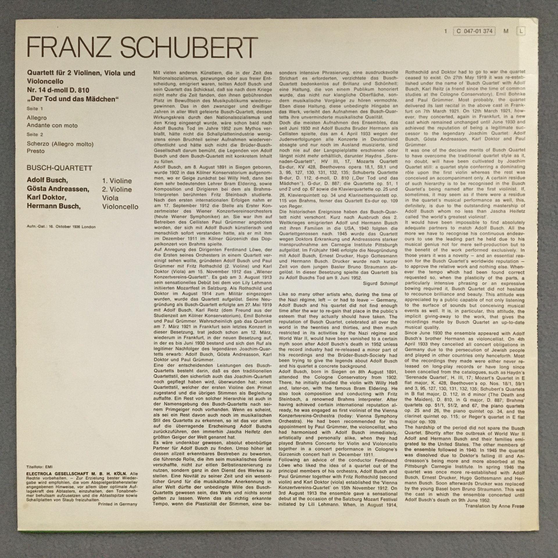 M736 Schubert String Quartet No.14 The Death & The Girl Dacapo 1 C 047-01 374 M