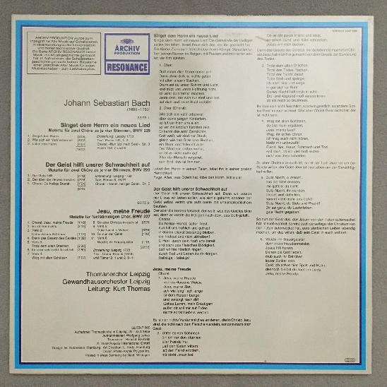 M739 Bach Motets Thomas DGG Archiv 2547 009 Stereo