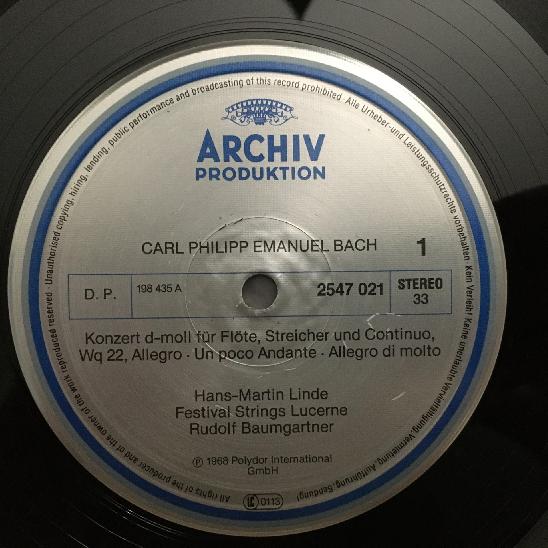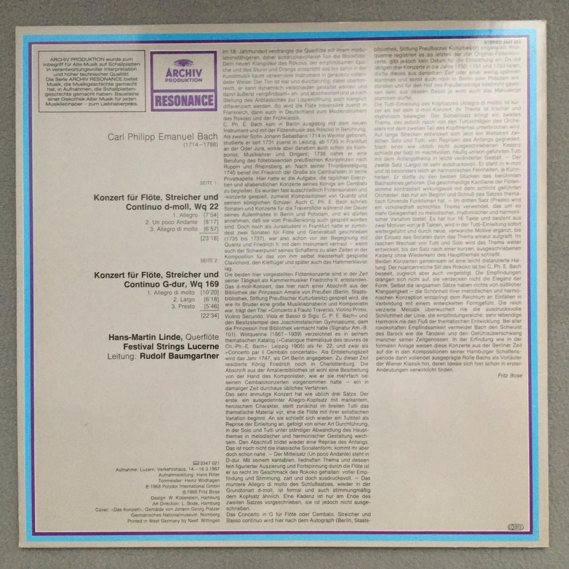 M741 C.P.E. Bach Flute Concertos Linde Baumgartner DGG Archiv 2547 021 Stereo