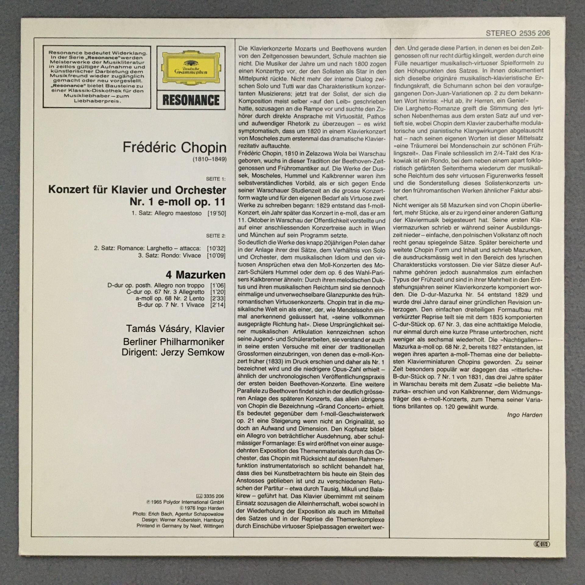 M754 Chopin Piano Concerto No.1 Mazurkas Vasary Semkow DGG 2535 206 Stereo
