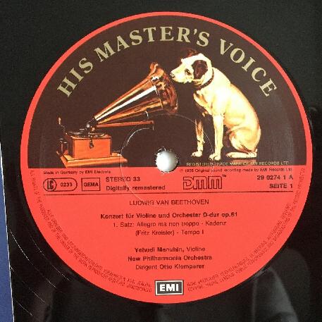 P416 Beethoven Violin Concerto Menuhin Klemperer EMI 055 29 0274 1 Digital St