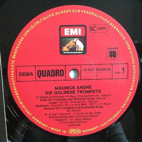 P432 Maurice Andre Golden Trumpet Charpentier Handel EMI 1C 027-03 544 Q Quadro