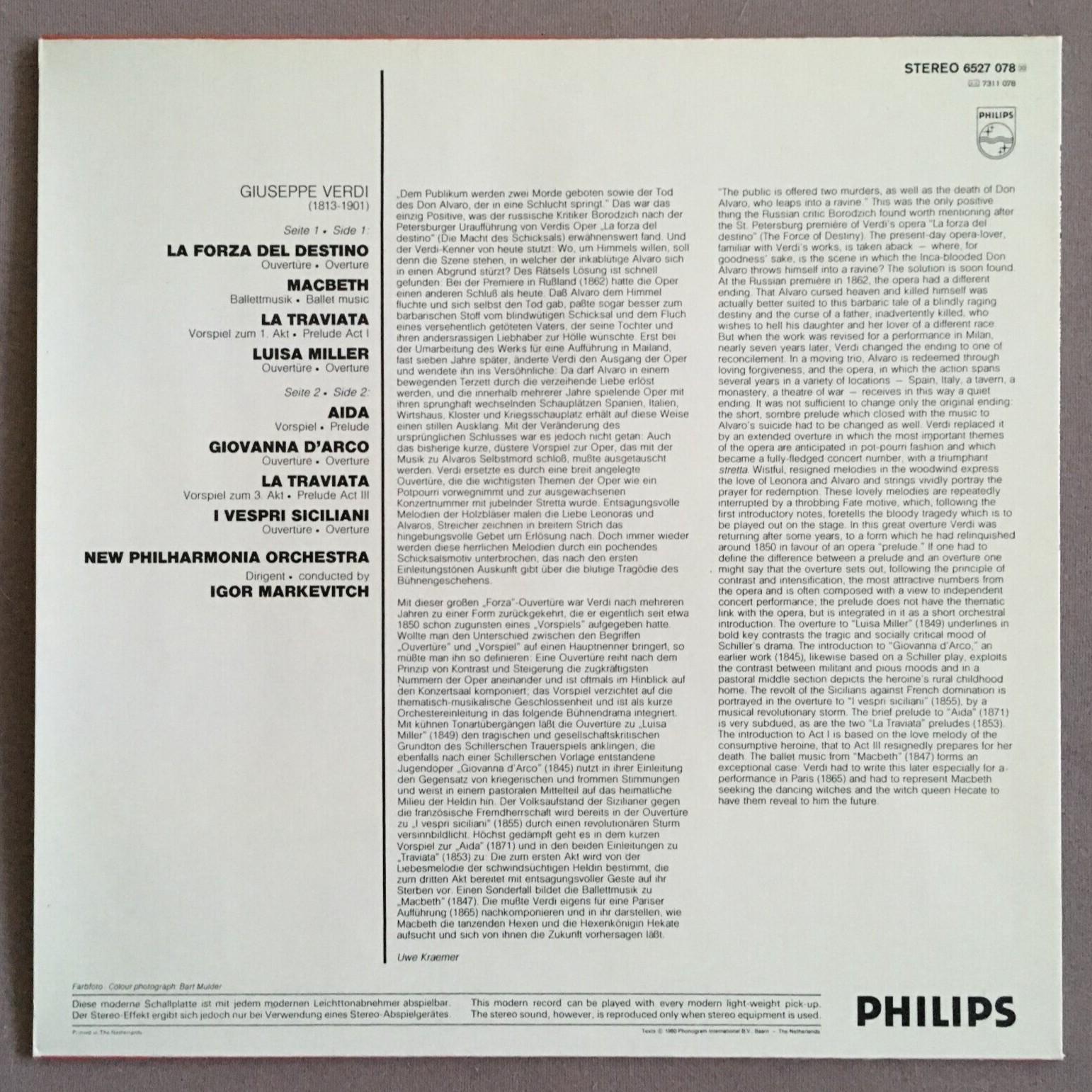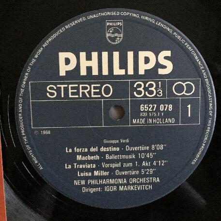 P388 Verdi Overtures La Traviata Aida Miller Markevitch Philips 6527 078 Stereo