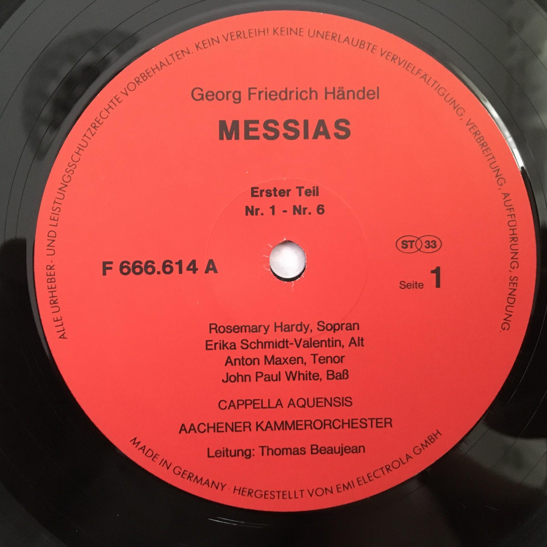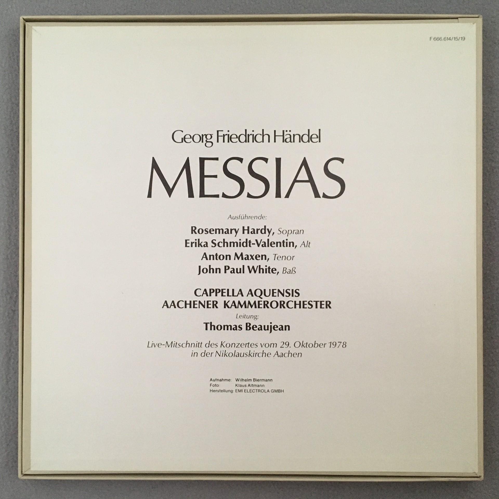 D367 Handel Messiah Beaujean Capella Aquensis 3LP EMI F 666.614/15/19 Stereo