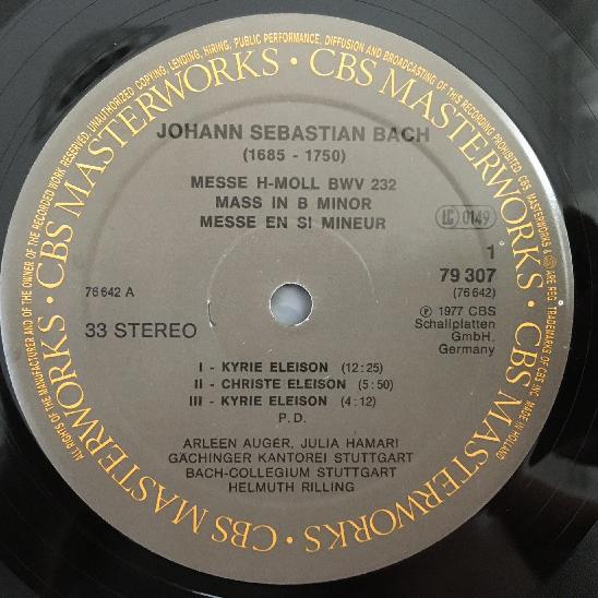 D373 Bach Mass in B-Minor Auger Hamari Kraus Schöne Rilling 3LP CBS 79307 Stereo