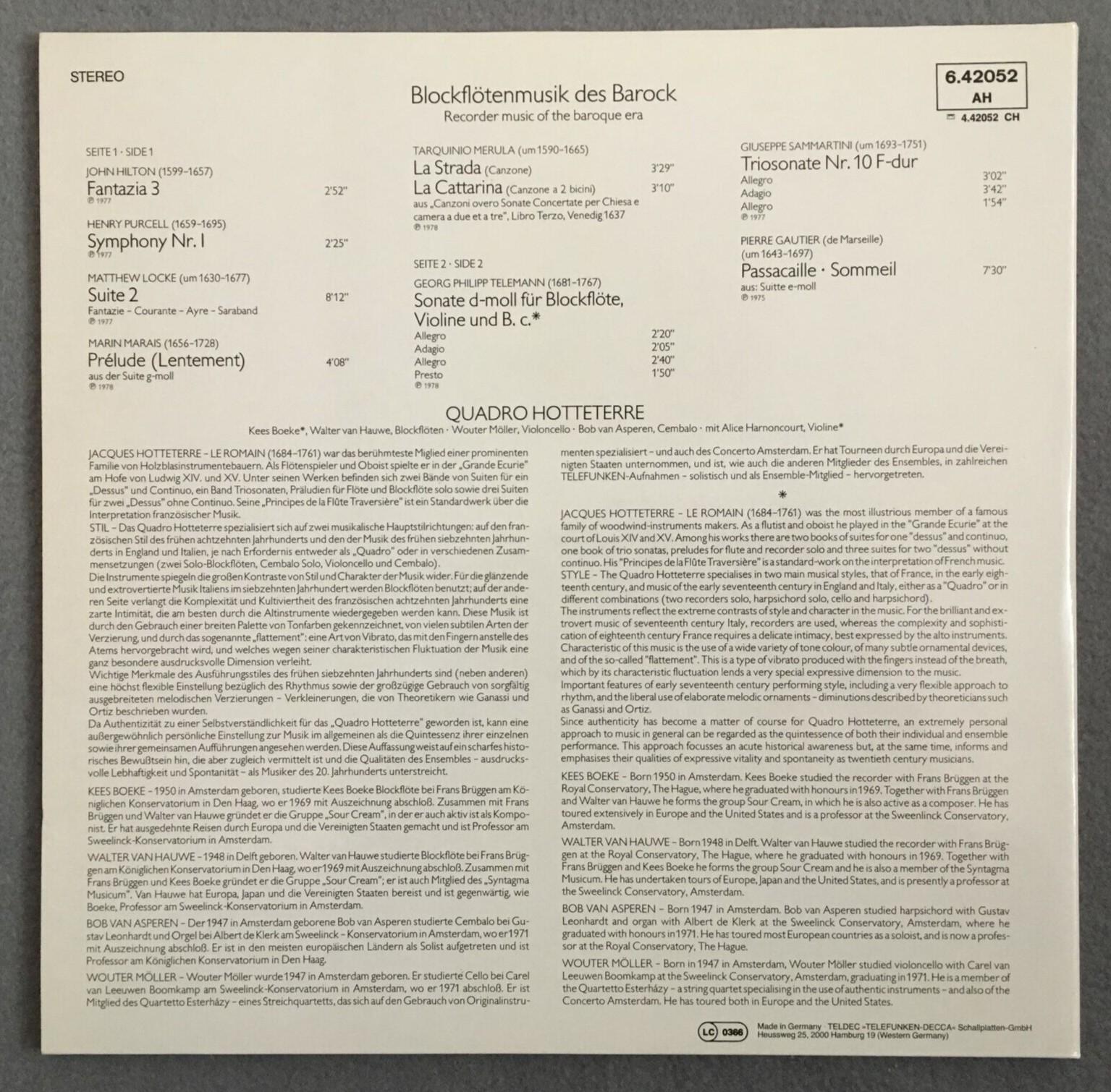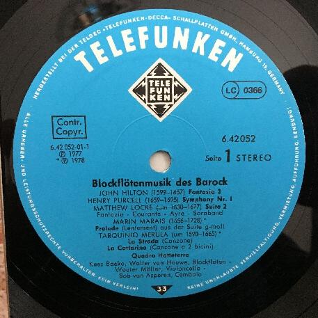 P235 Recorder Music of Baroque Quadro Hotteterre Telefunken 6.42052 AH Stereo