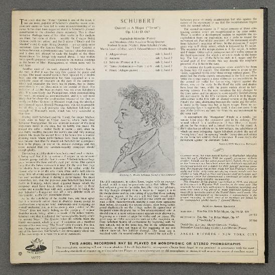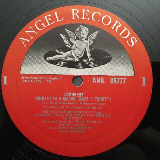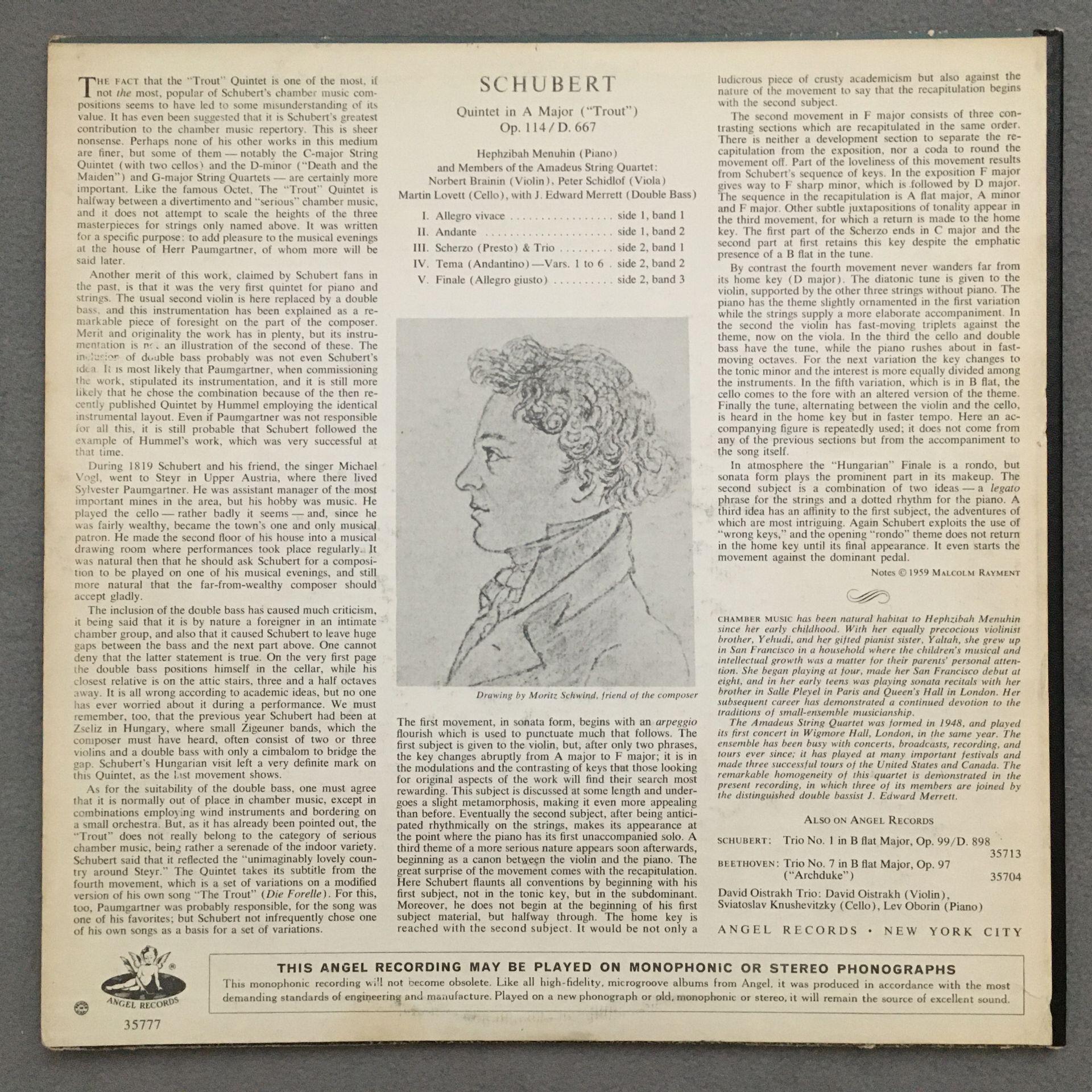 M766 Schubert Trout Quintet Menuhin Amadeus Quartet Angel 35777 Stereo