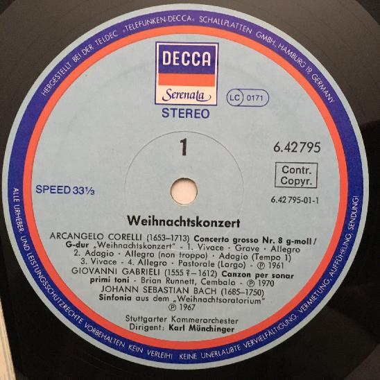 M772 Corelli Christmas Concerto Pachelbel Bach Munchinger DECCA 6.42795 BH St