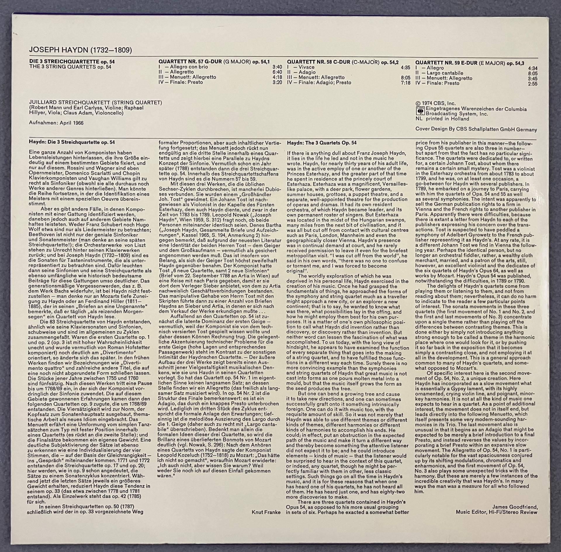 P083 Haydn The 3 String Quartets Juilliard String Quartet CBS 61 549 Stereo
