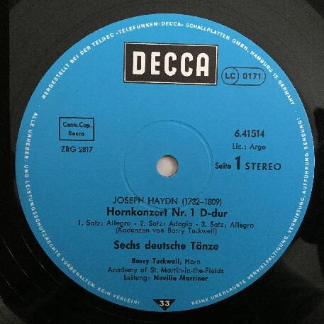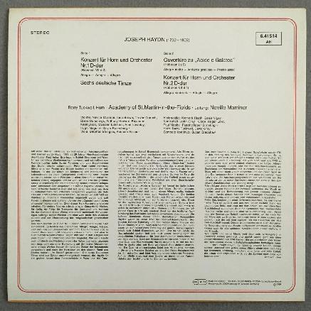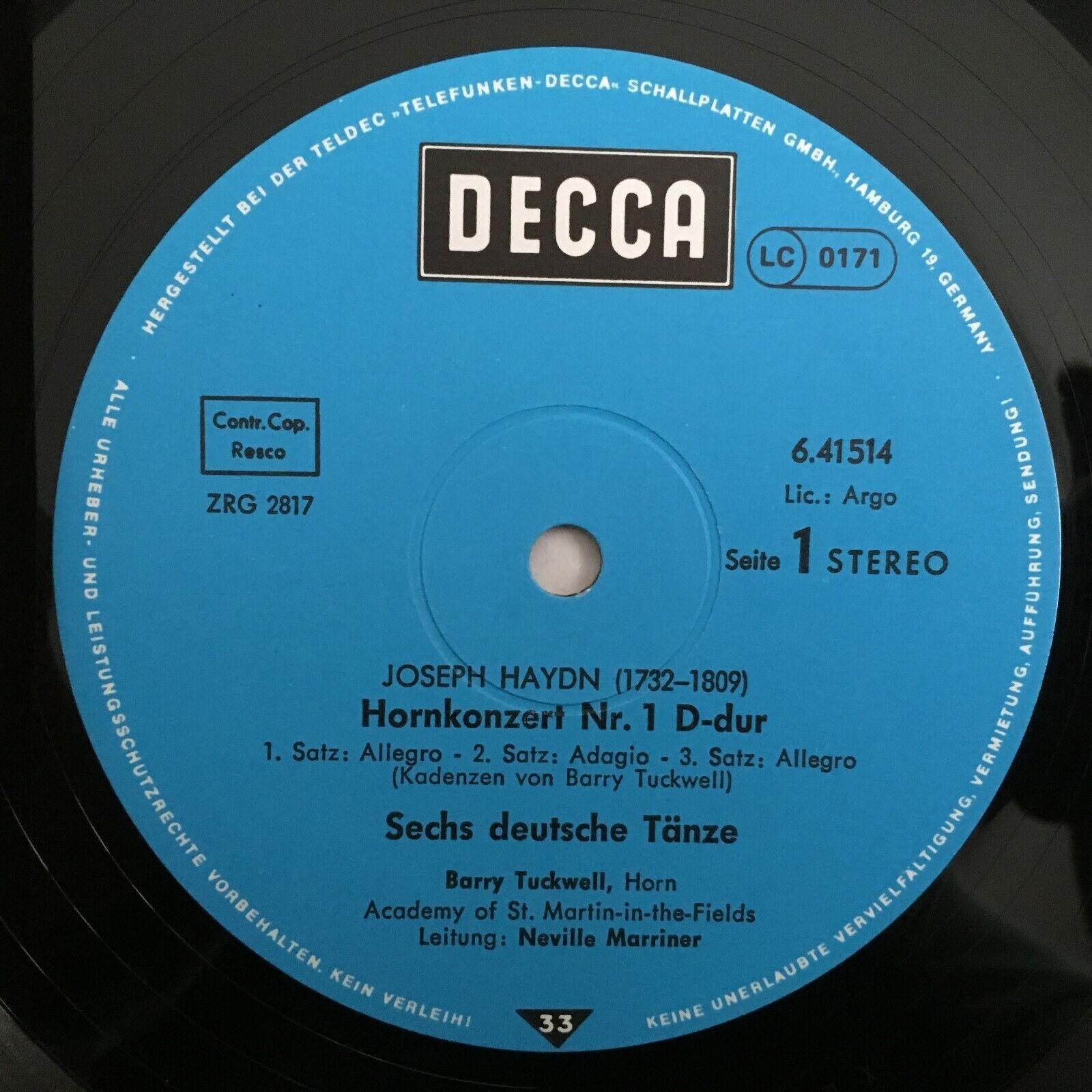 P191 Haydn Horn Concertos Overture Tuckwell Marriner DECCA 6.41514 AH Stereo