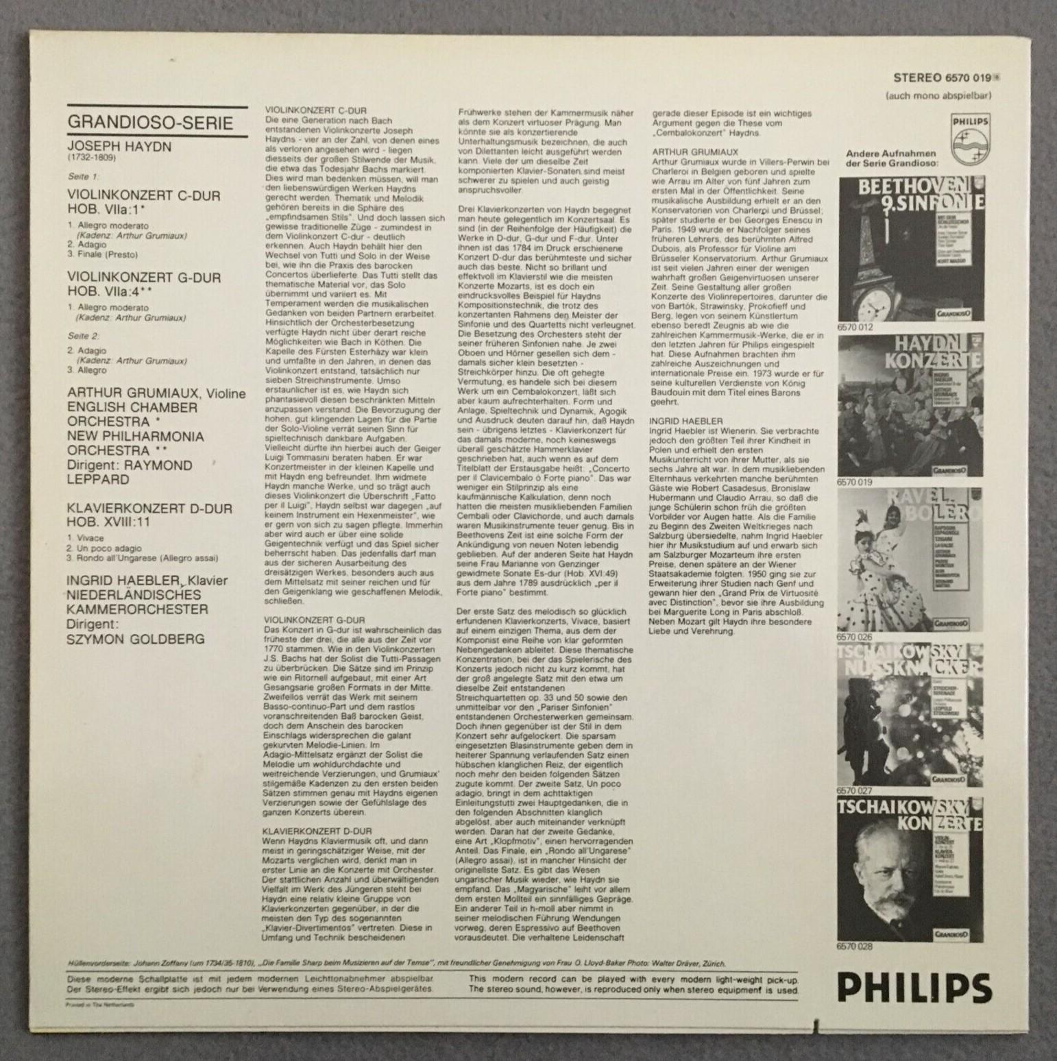 P188 Haydn Concertos Haebler Grumiaux Leppard Goldberg Philips 6570 019 Stereo