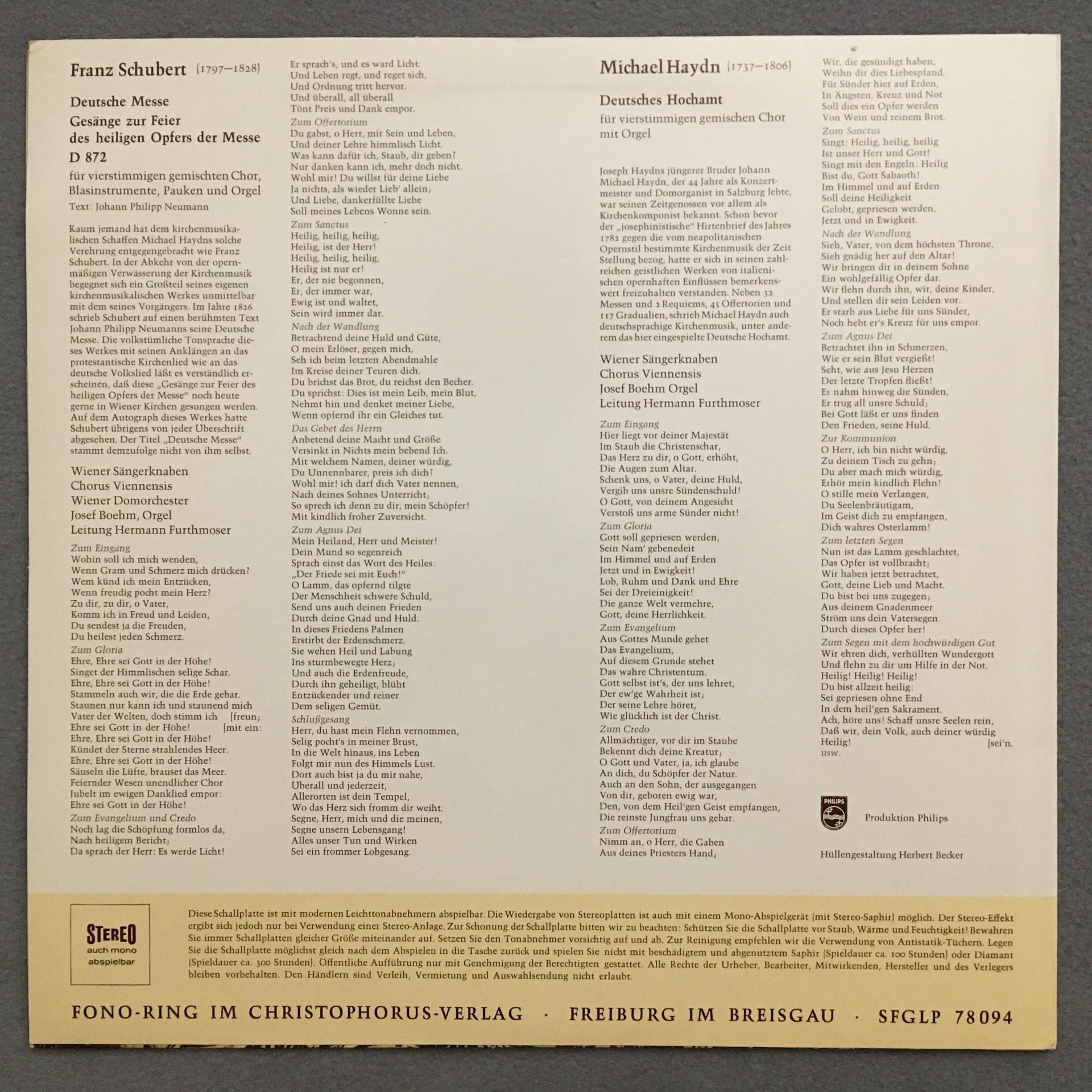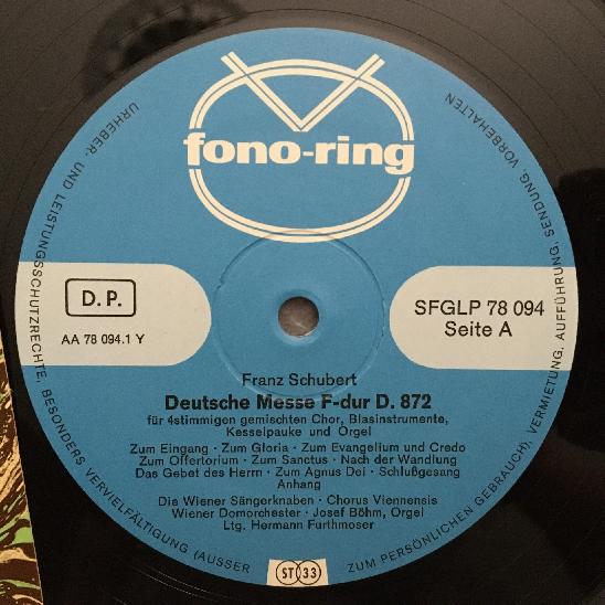 M790 Schubert German Mass Vienna Boy´s Choir Fono-Ring SFGLP 78 094 Stereo