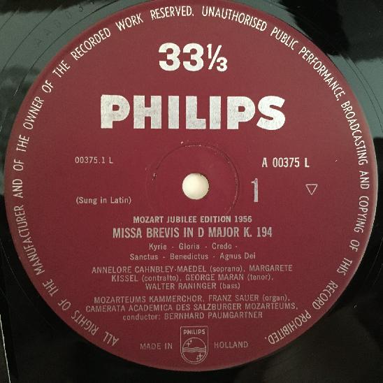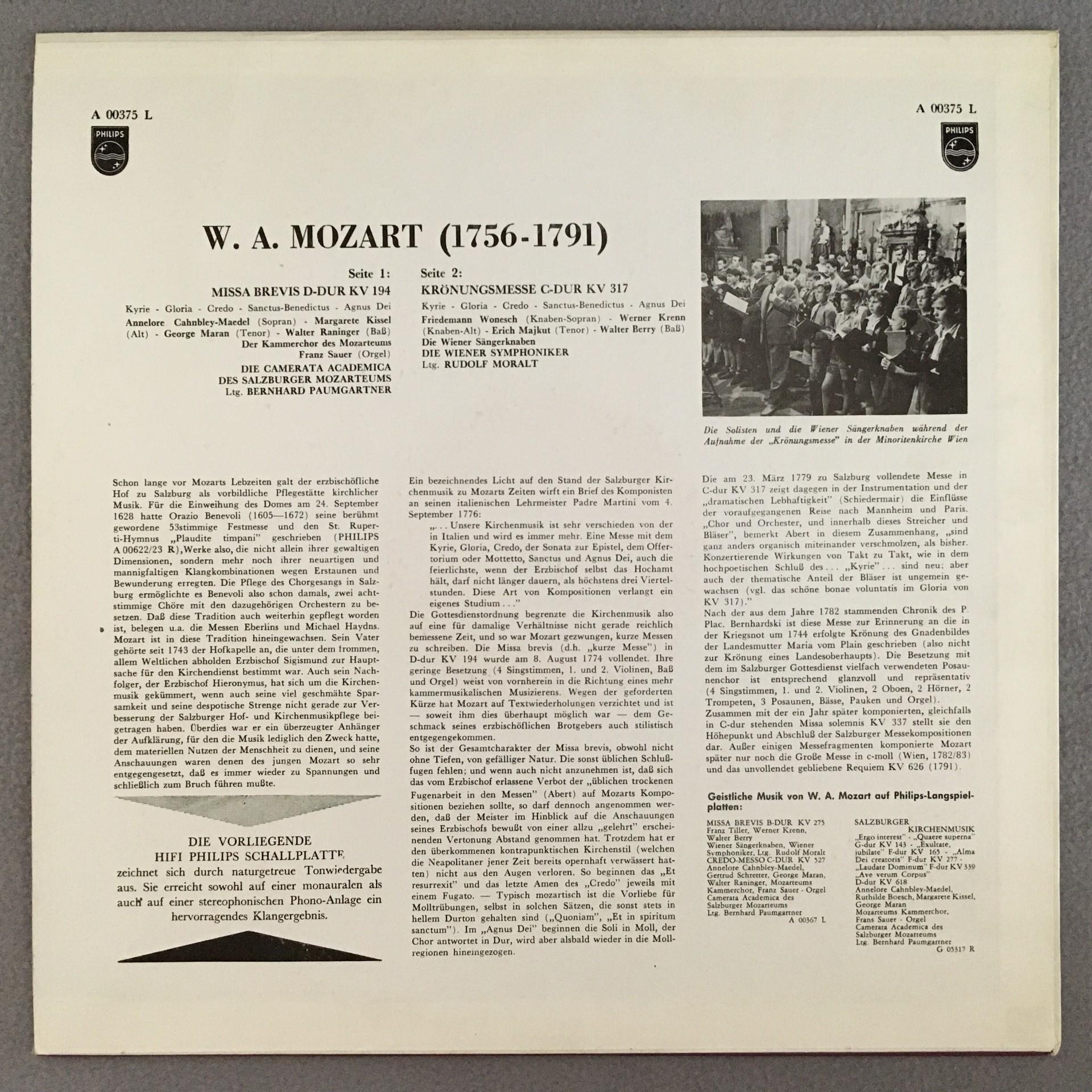 M805 Mozart Missa Brevis Coronation Mass Muralt VSO Philips A 00375 L Minigroove
