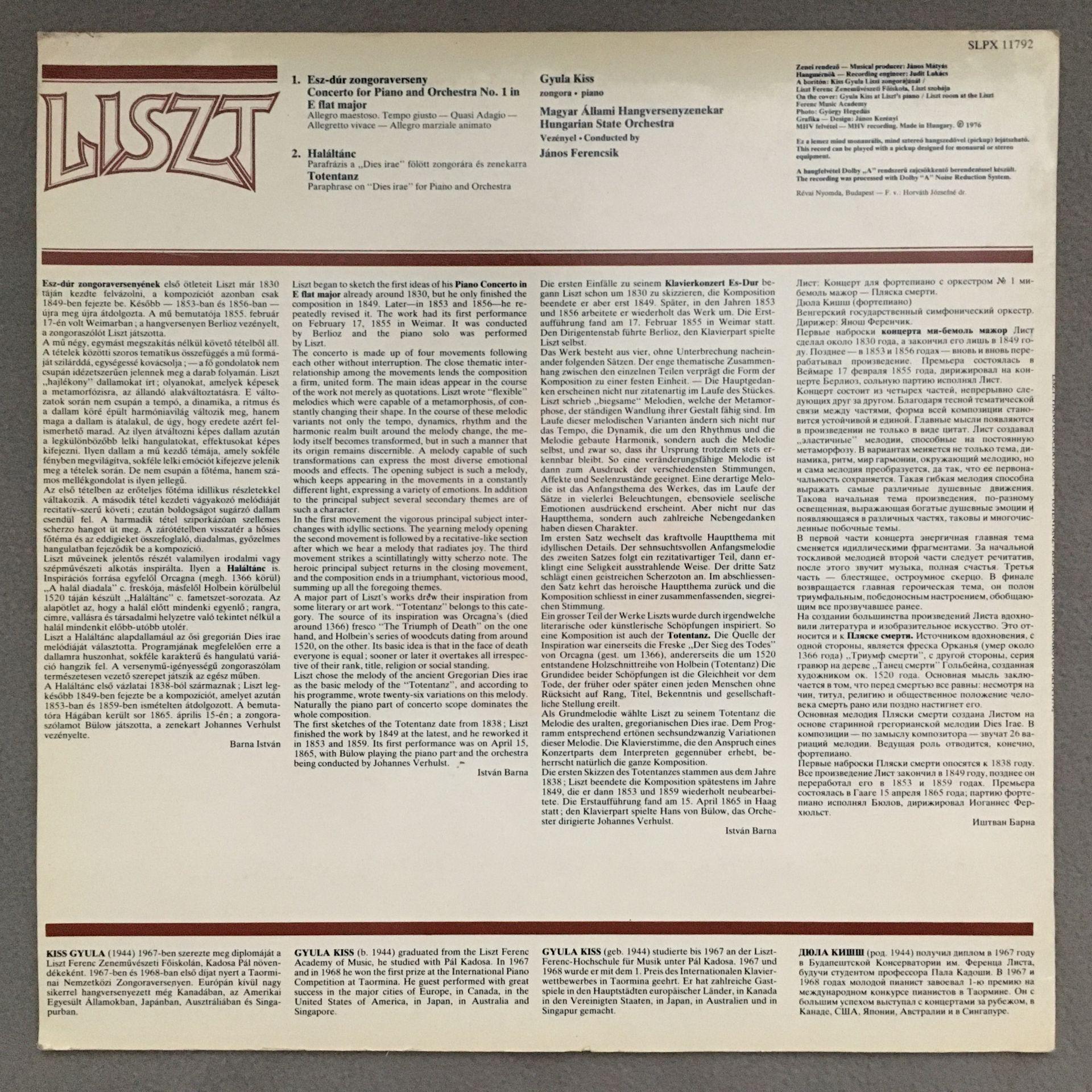 M825 Liszt Piano Concerto Totentanz Kiss Ferencsik Hungaroton SLPX 11 792 Stereo