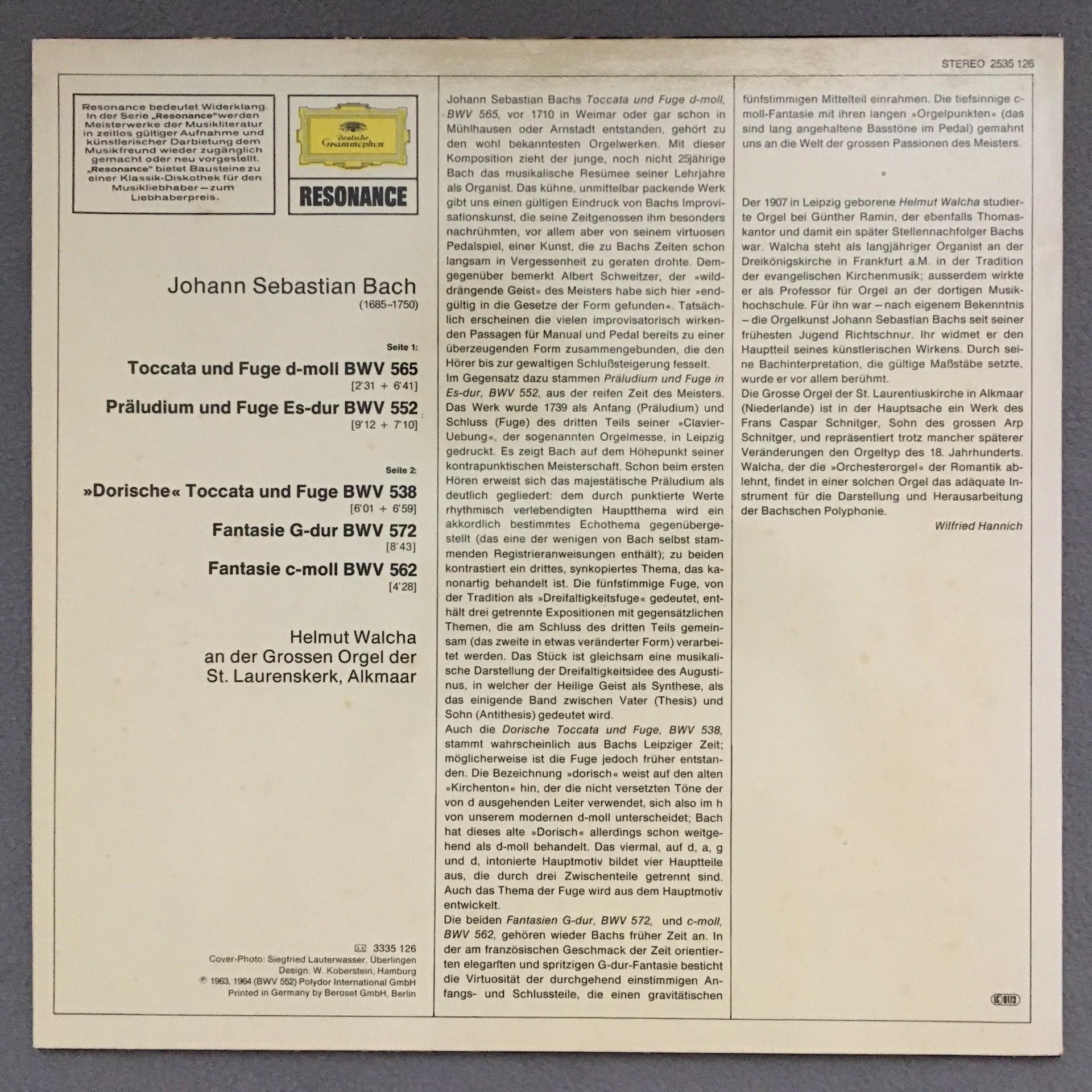 M829 Bach Toccata & Fugue Fantasy Walcha Organ DGG 2535 126 Stereo