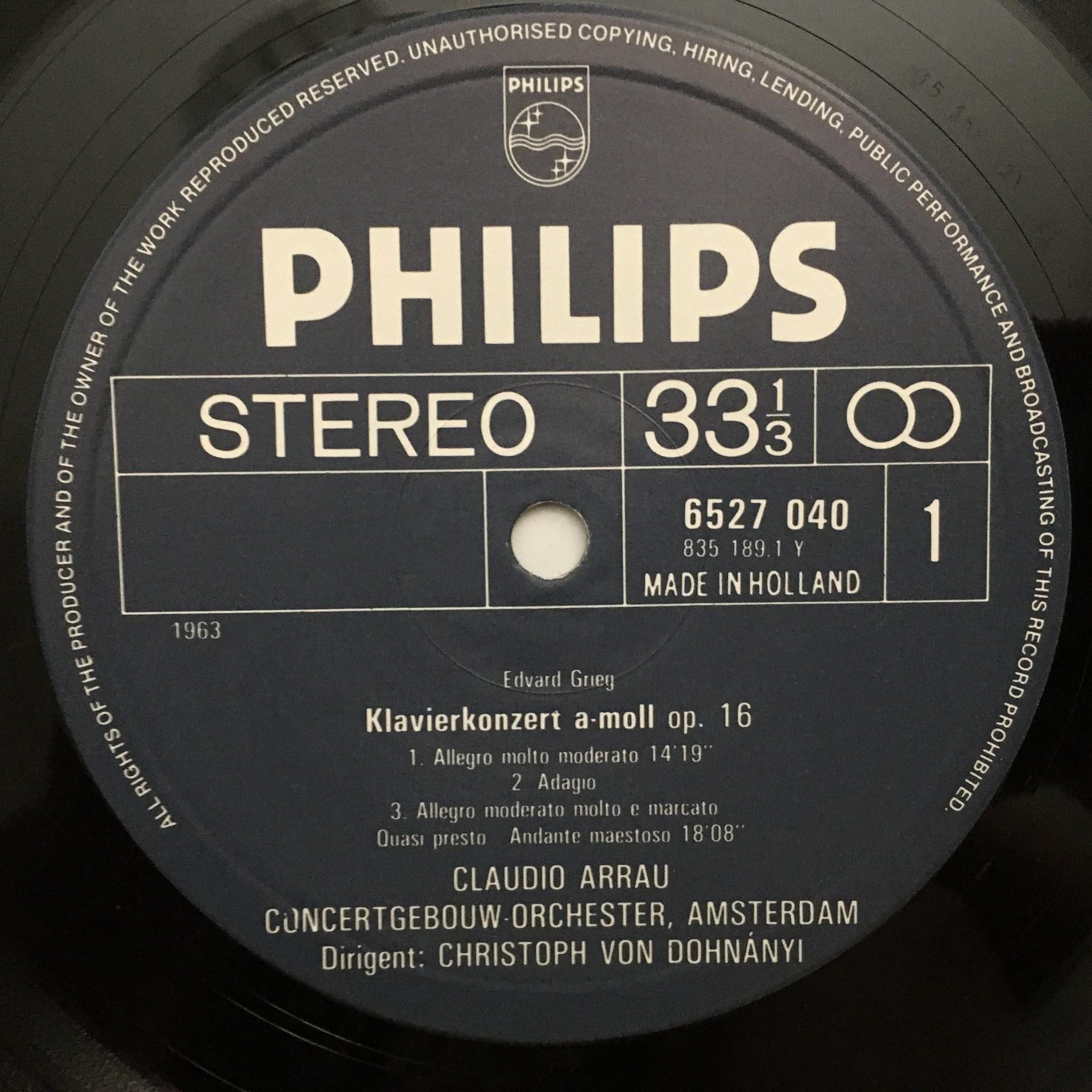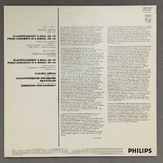 M833 Grieg Schumann Piano Concertos Arrau Dohnanyi Philips 6527 040 Stereo