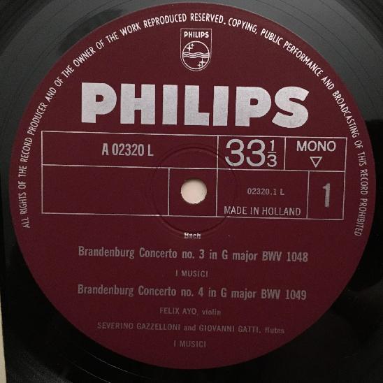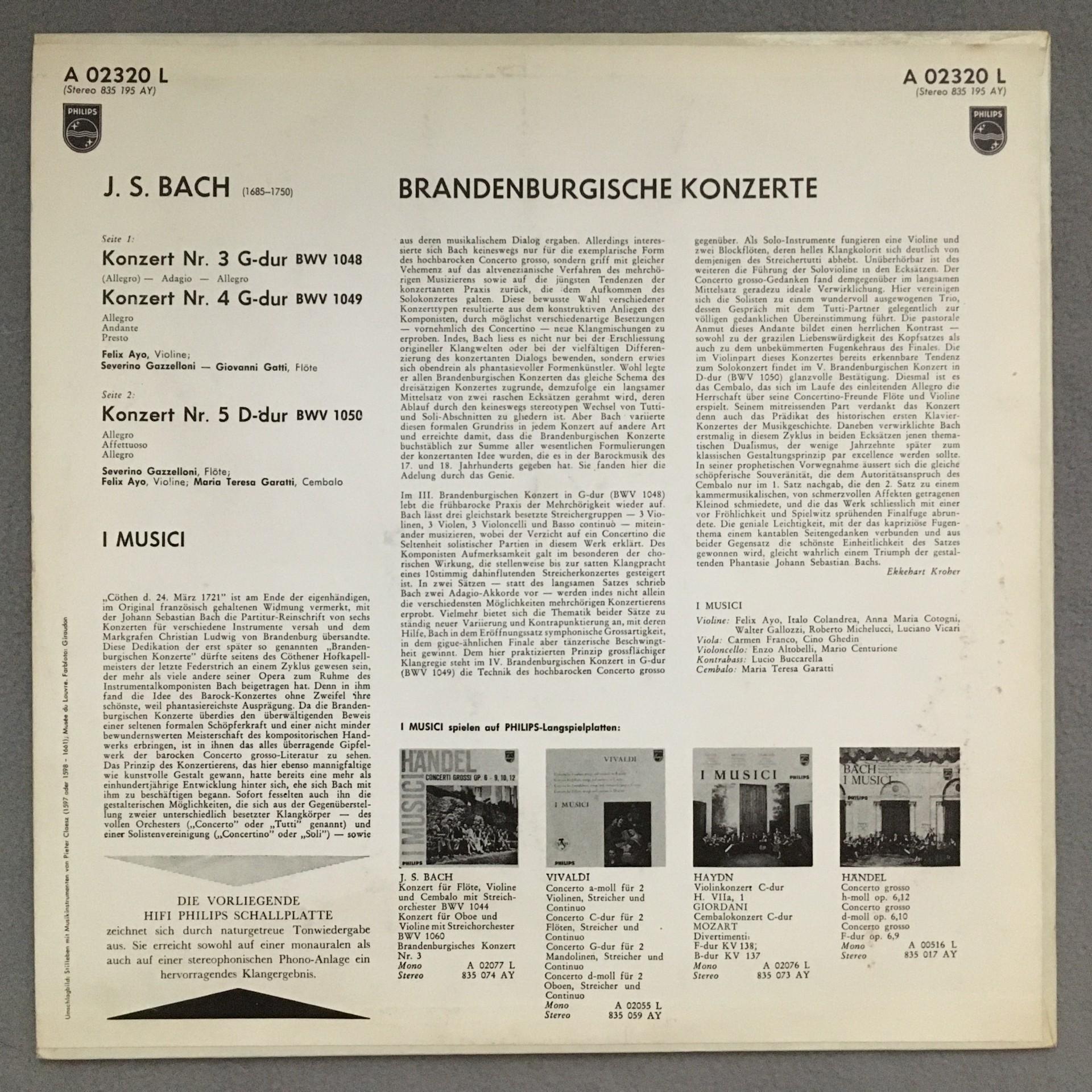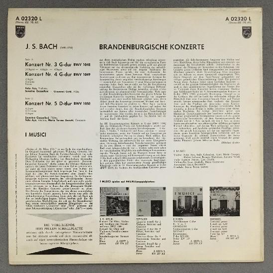 M838 Bach Brandenburg Concertos No.3 & No.4 & No.5 I Musici Philips A 02320 L