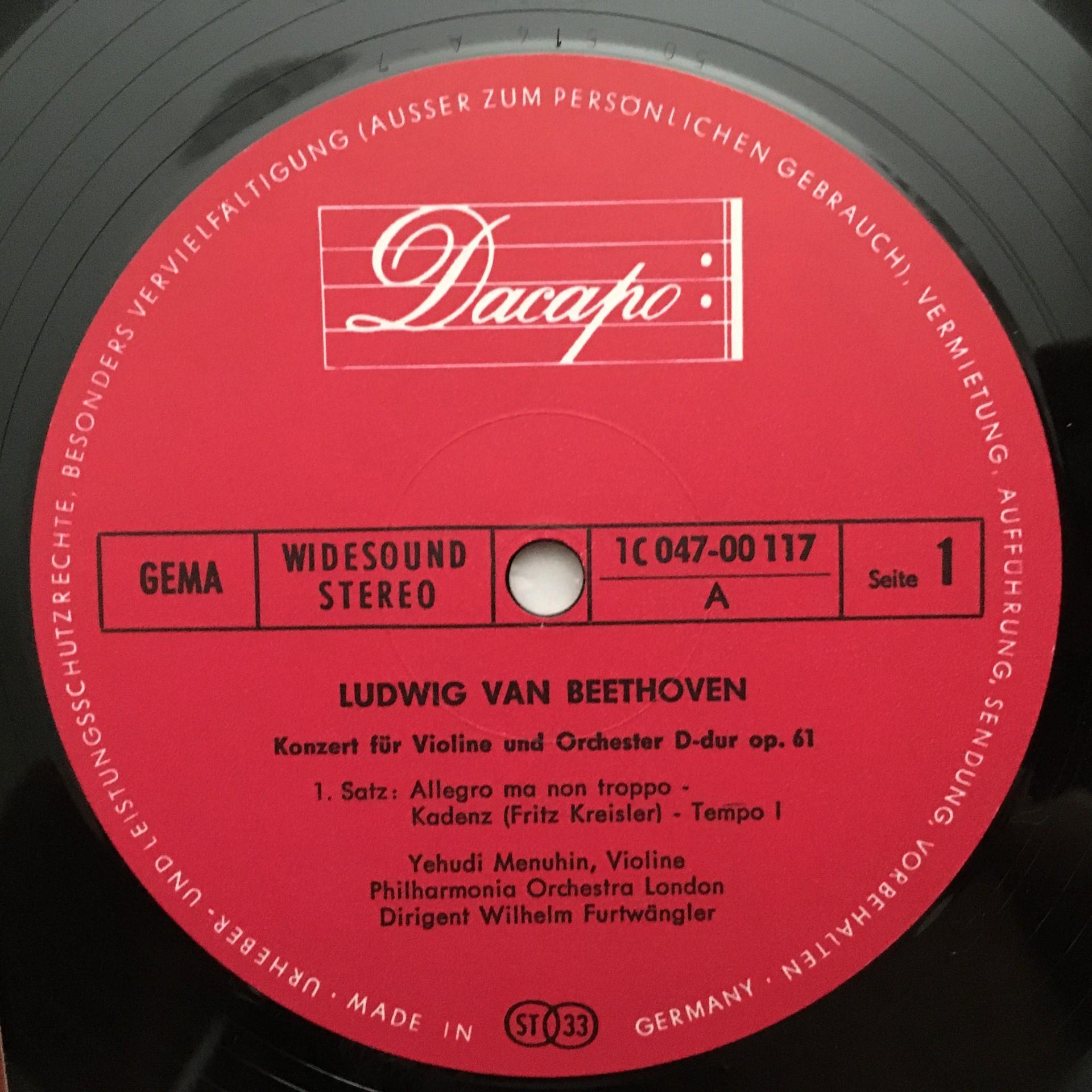 M840 Beethoven Violin Concerto Menuhin Furtwängler Dacapo 1 C 047-00 117