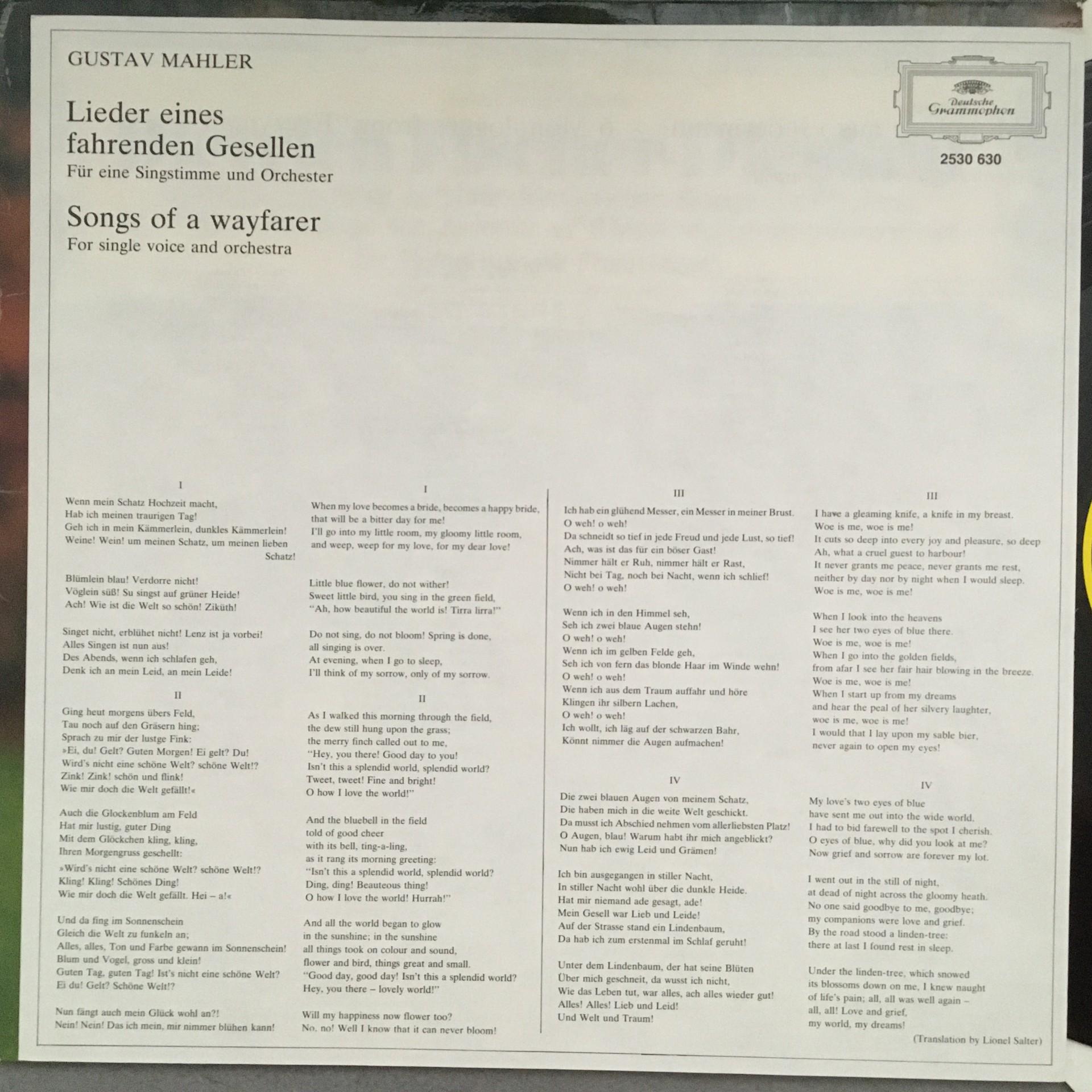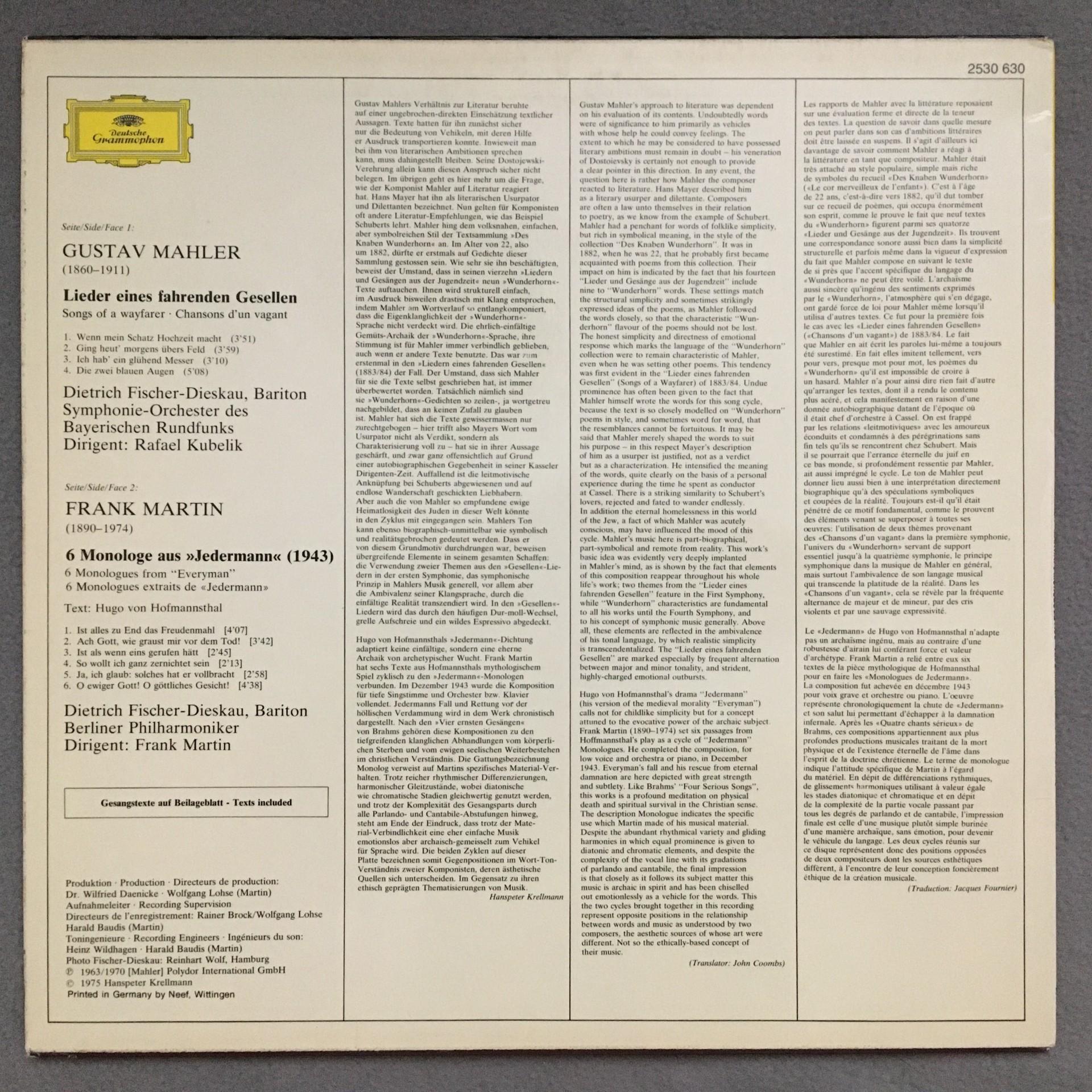 M842 Fischer-Dieskau Mahler Songs Martin Monologues Kubelik DGG 2530 630 Stereo