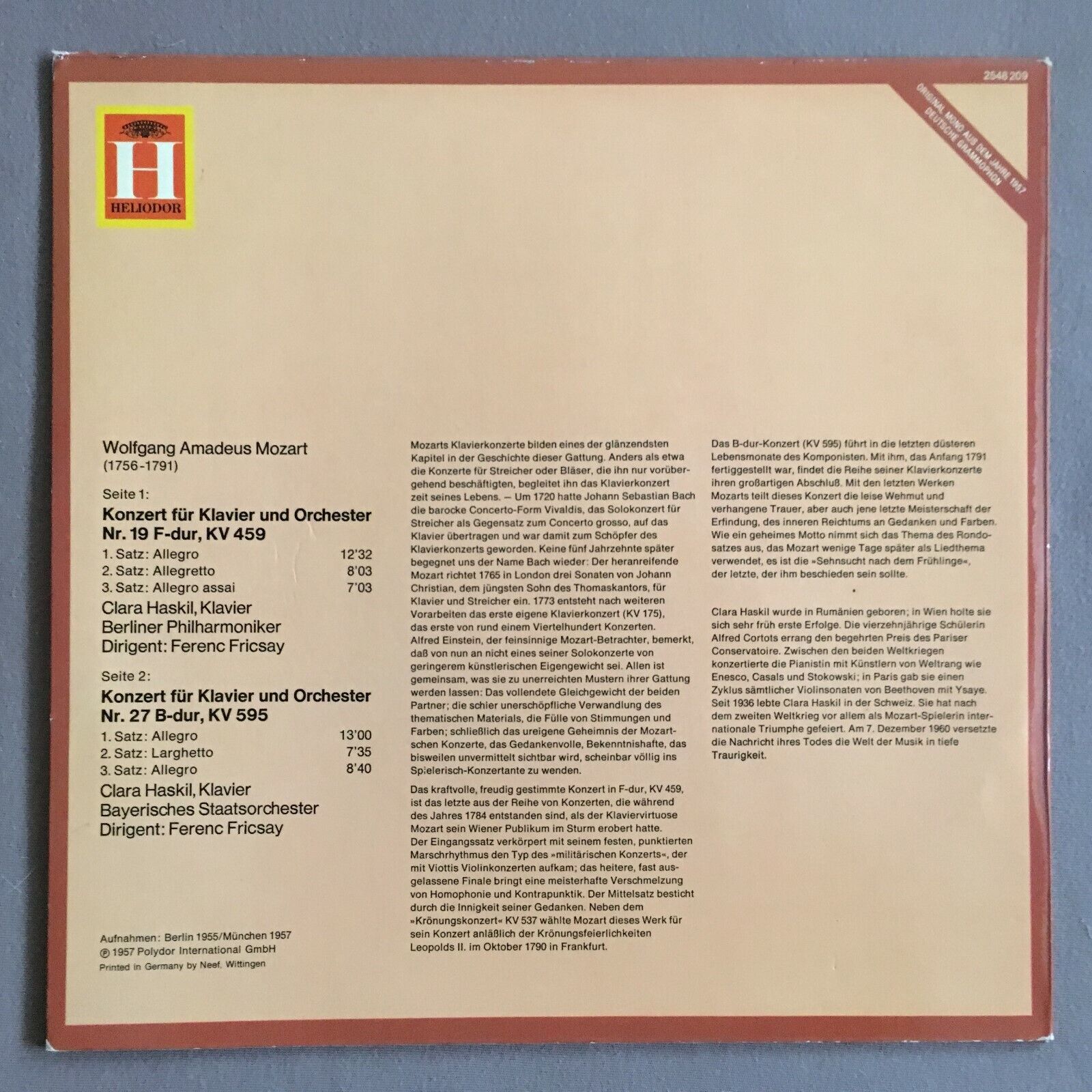 X037 Mozart Piano Concertos No.19 & No.27 Haskil Fricsay Heliodor 2548 209