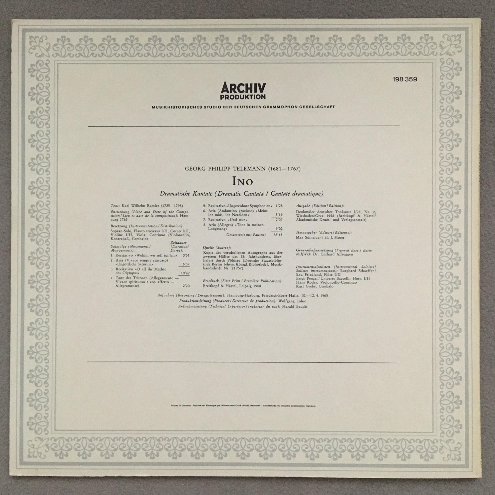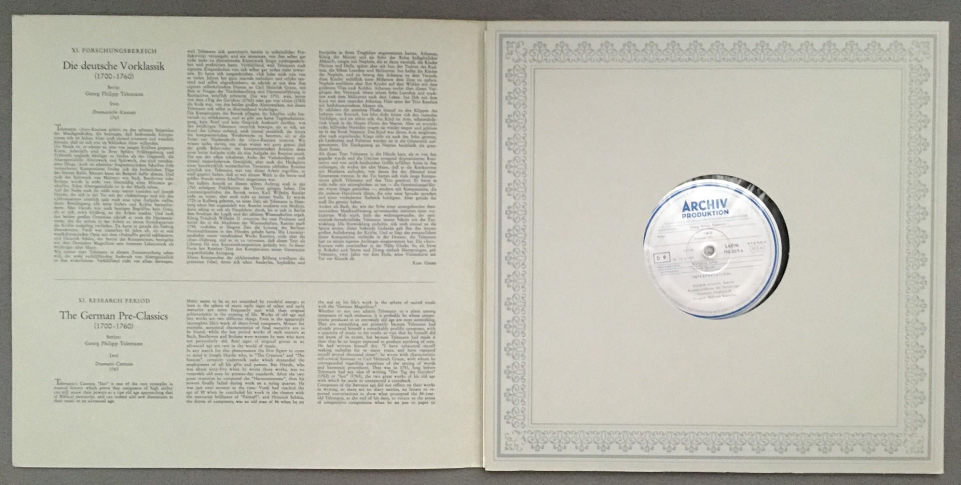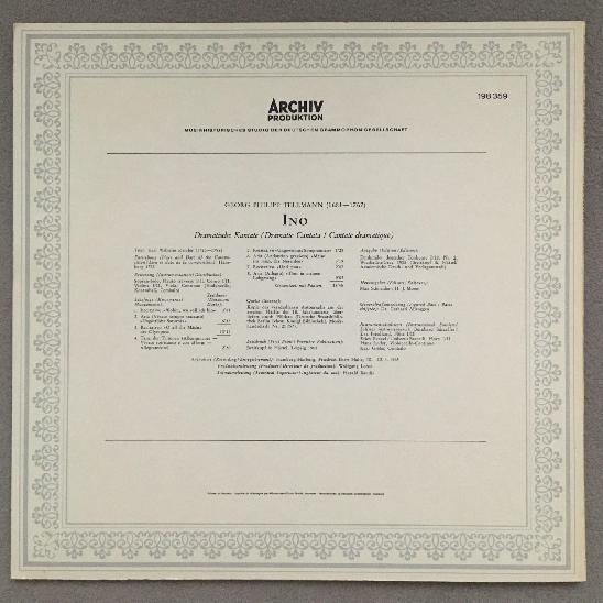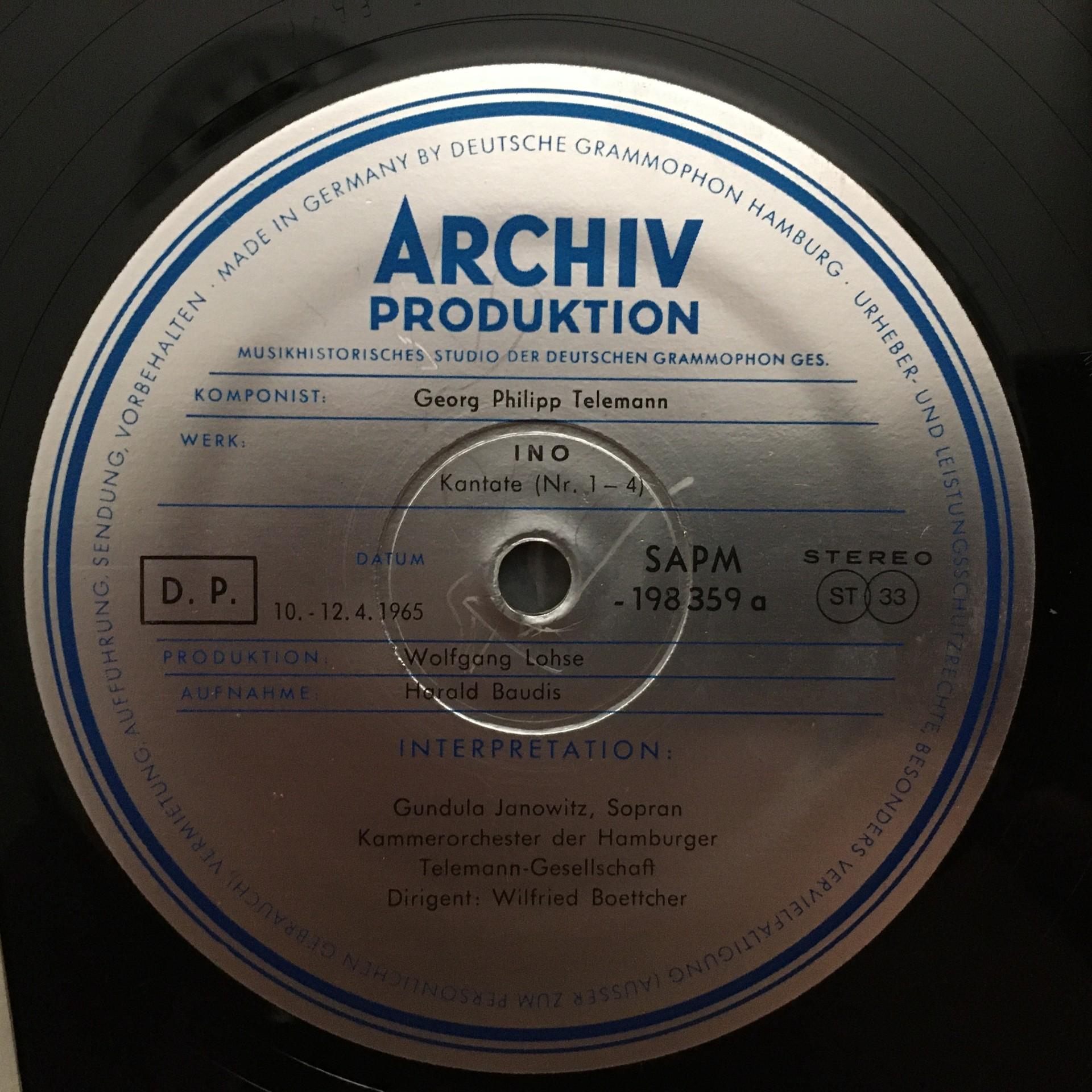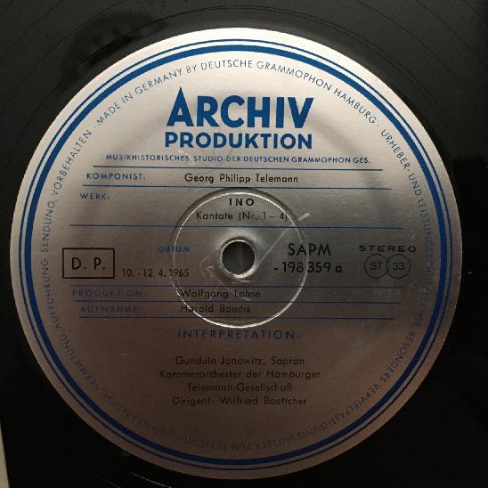 M855 Telemann Dramatic Cantata Janowitz Boettcher DGG Archiv 198 359 Stereo