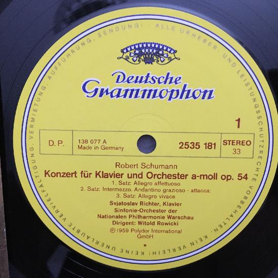 M860 Schumann Piano Concerto Concert Piece Richter Rowicki DGG 2535 181 Stereo