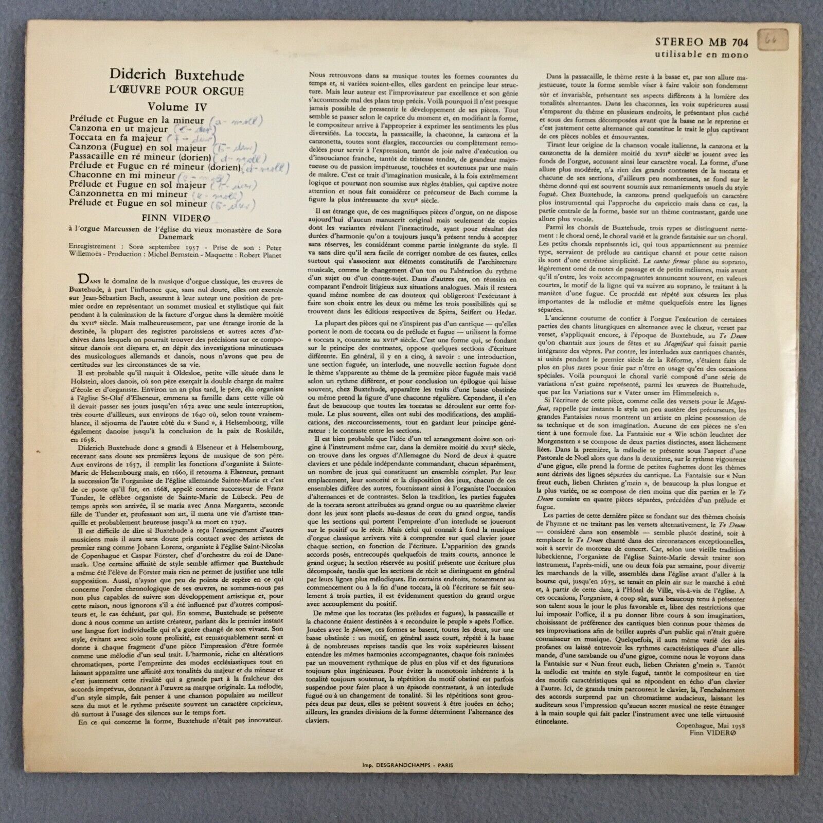 Y525 Buxtehude Organ Works Vol.4 Preludes Toccata Videro Valois MB 704 Stereo