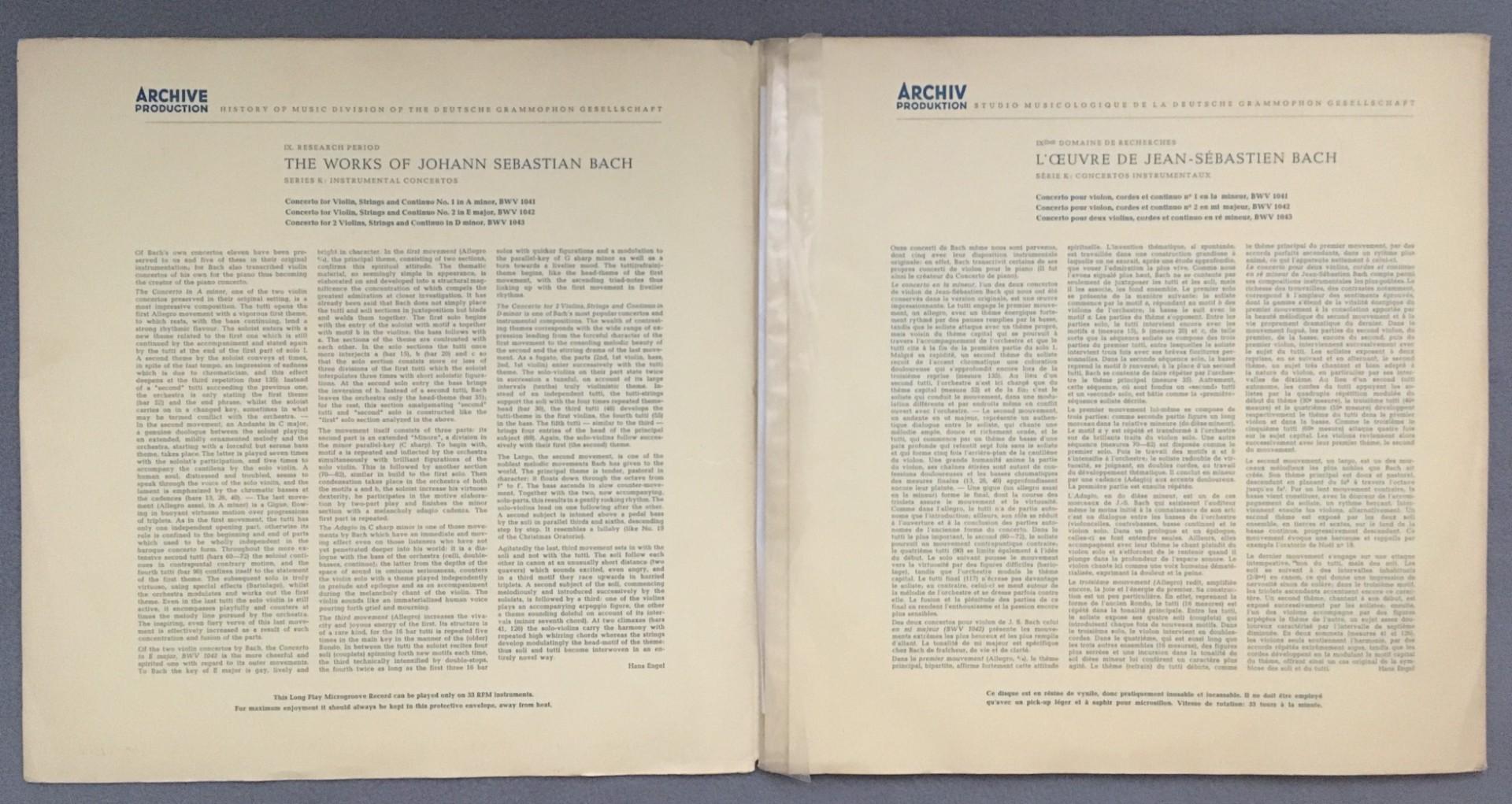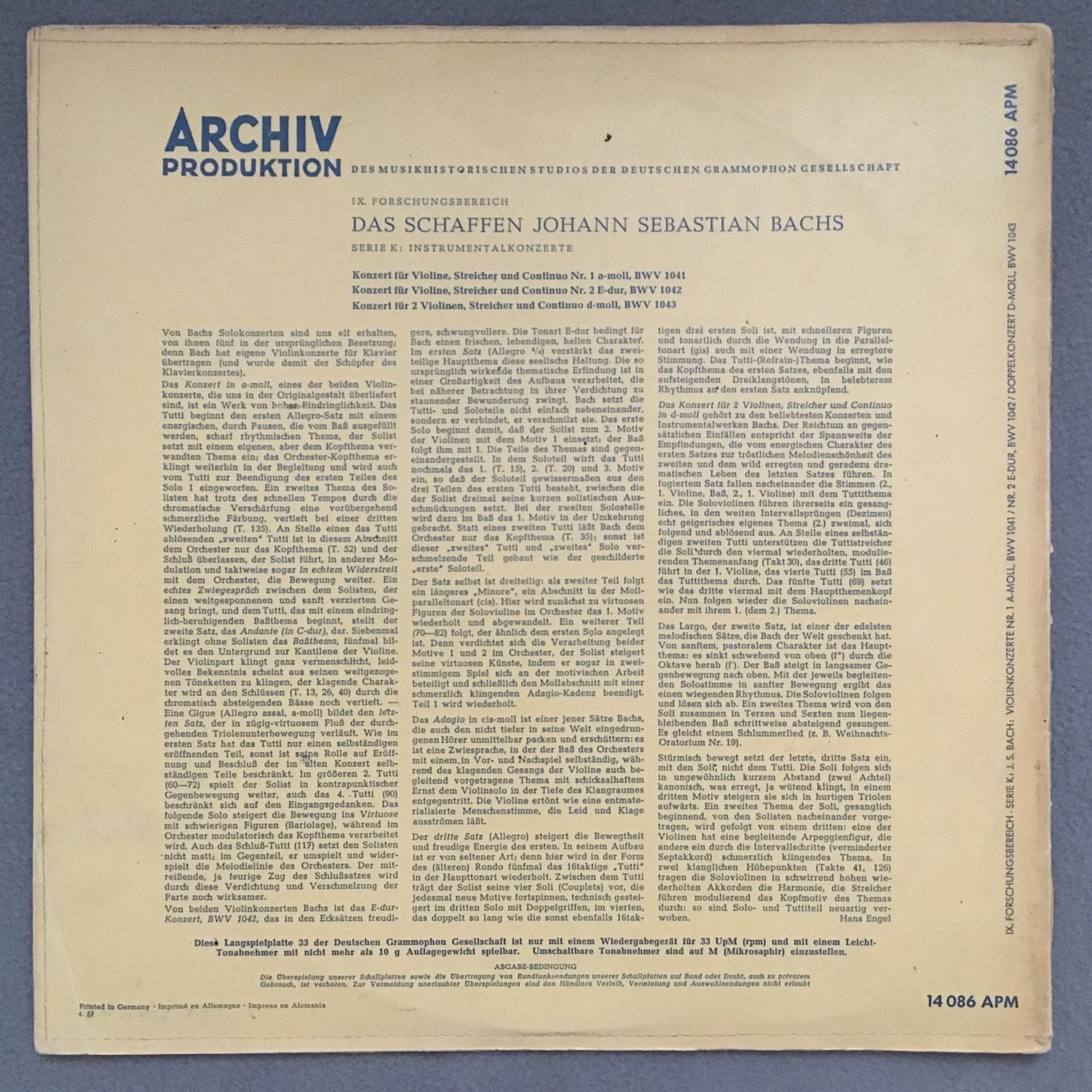 M865 Bach Brandenburg Concertos Schneiderhan Baumgartner DGG Archiv 14 086 APM