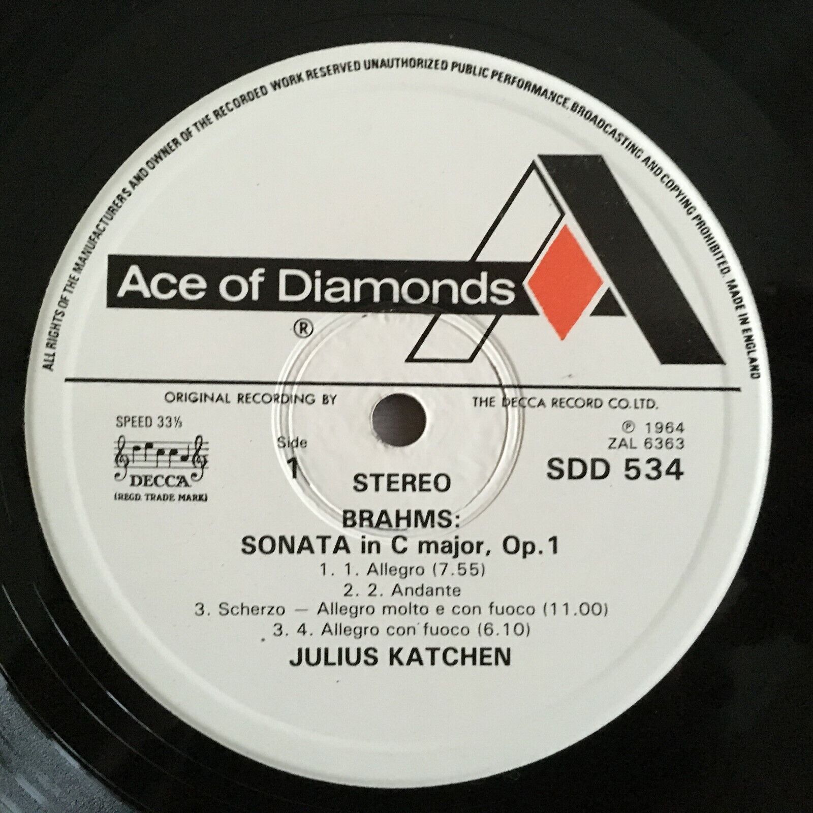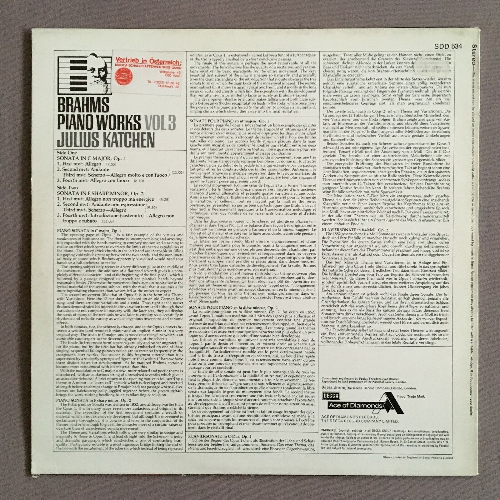 X060 Brahms Piano Works Vol.3 Sonatas Katchen Ace of Diamonds SDD 534 Stereo