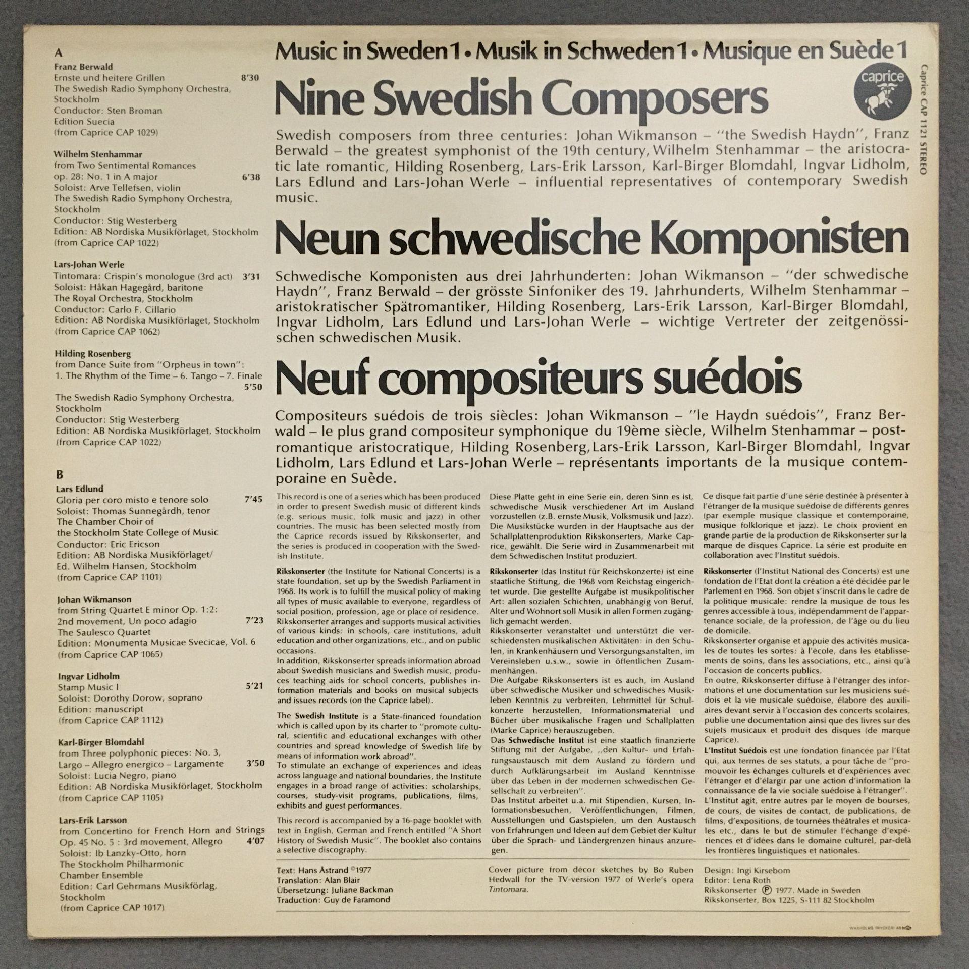 M867 Music in Sweden 1 9 Composers Caprice CAP 1121 Stereo