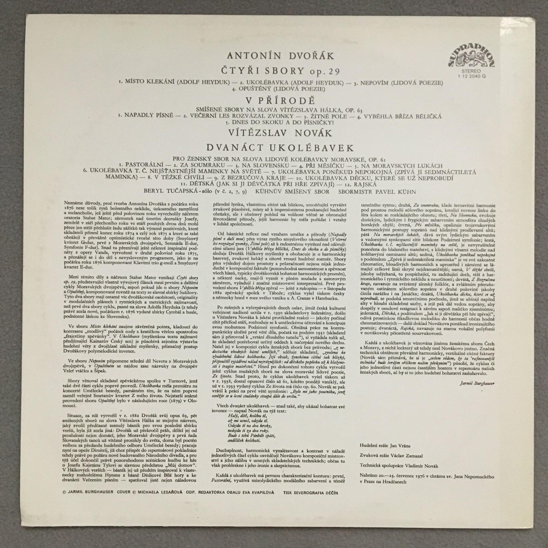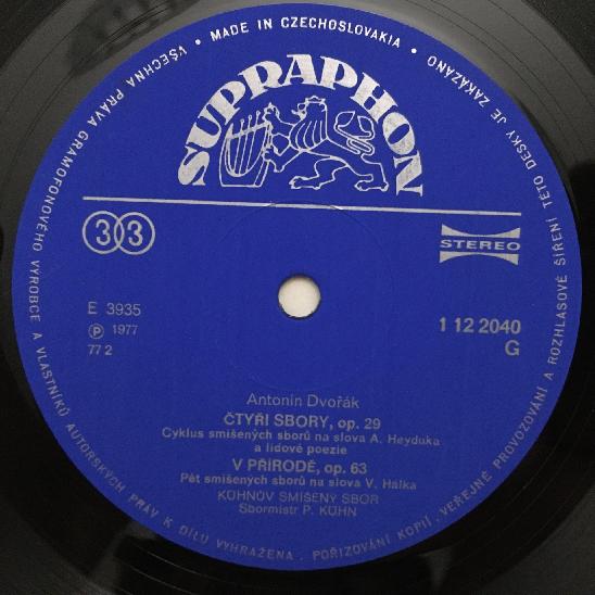 M869 Dvorak Ctyri Sbory op.29 Novak Kühn Supraphon 1 12 2040 G Stereo