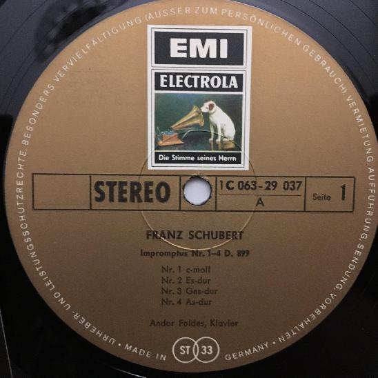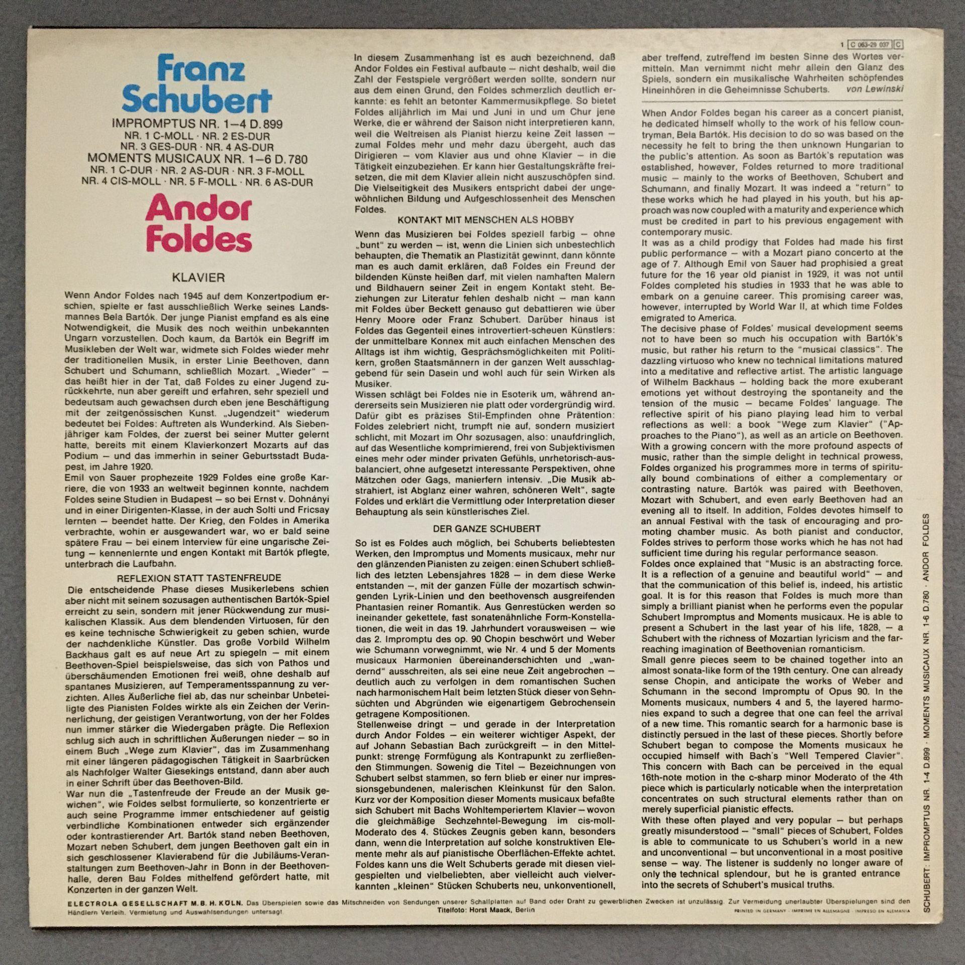 M872 Schubert Impromptus Moments Musicaux Foldes EMI 1 C 063-29 037 Stereo