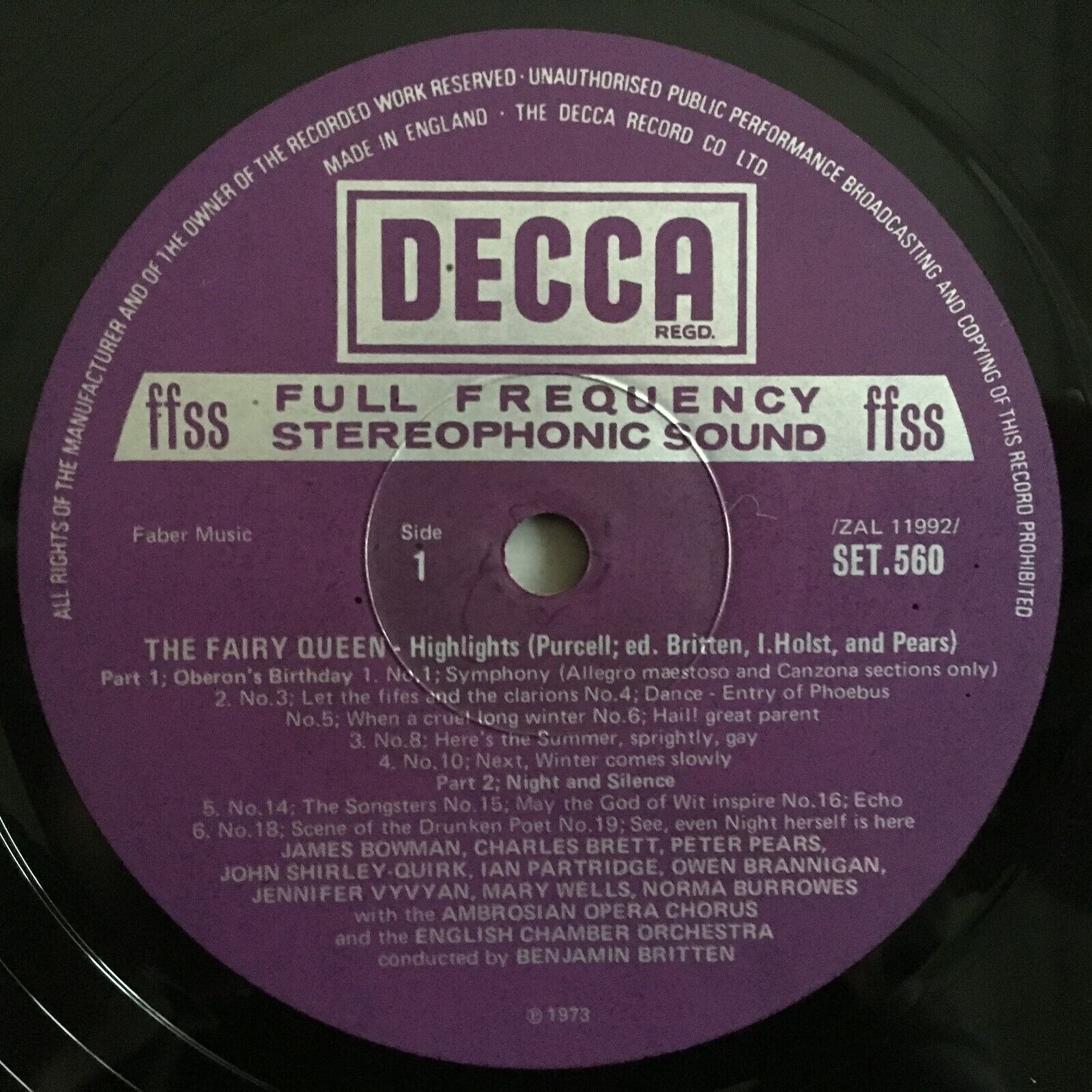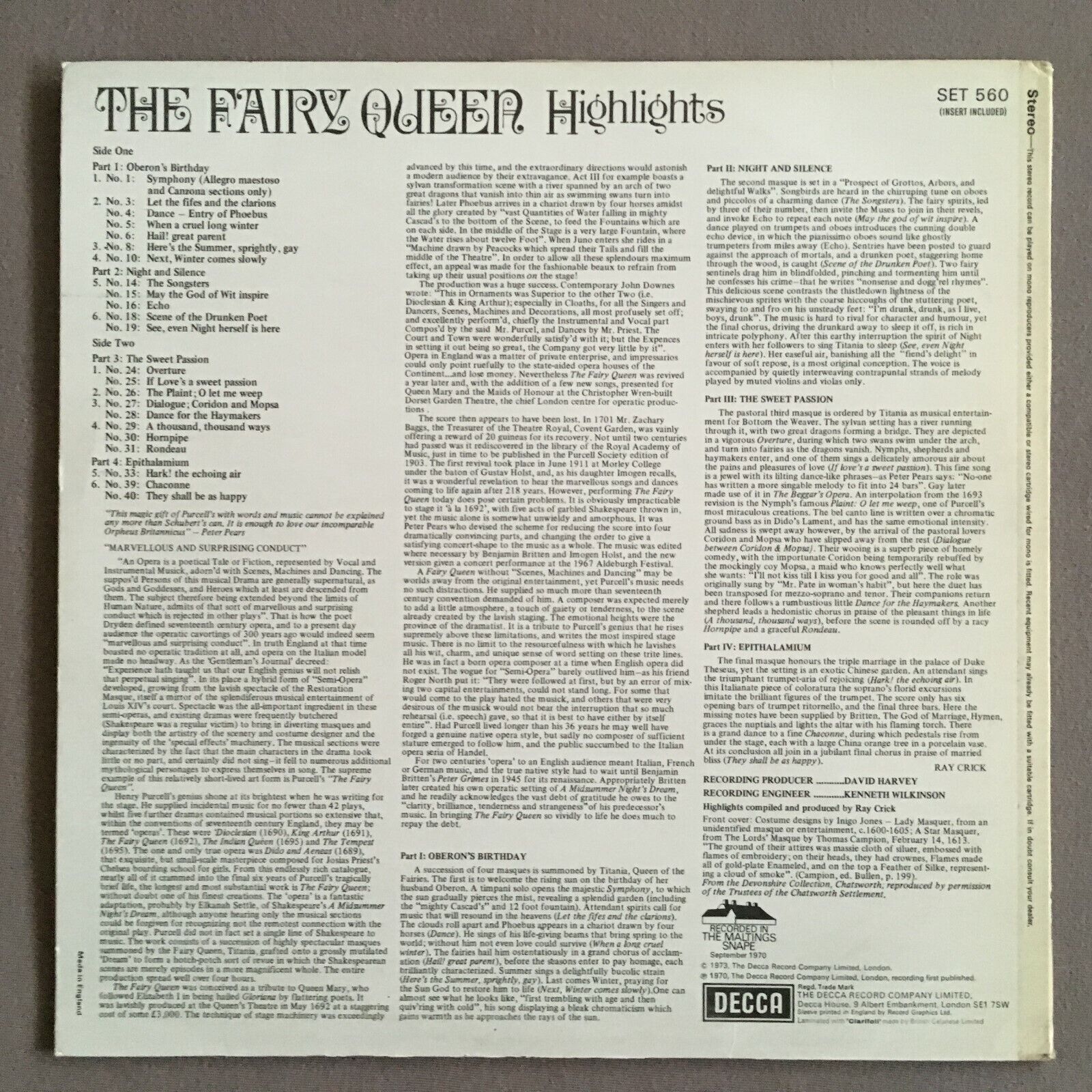 X062 Purcell The Fairy Queen Vyvyan Pears Wells Britten DECCA SET 560 Stereo