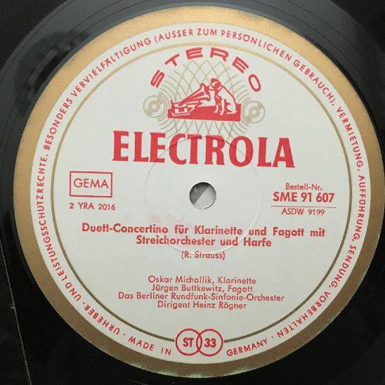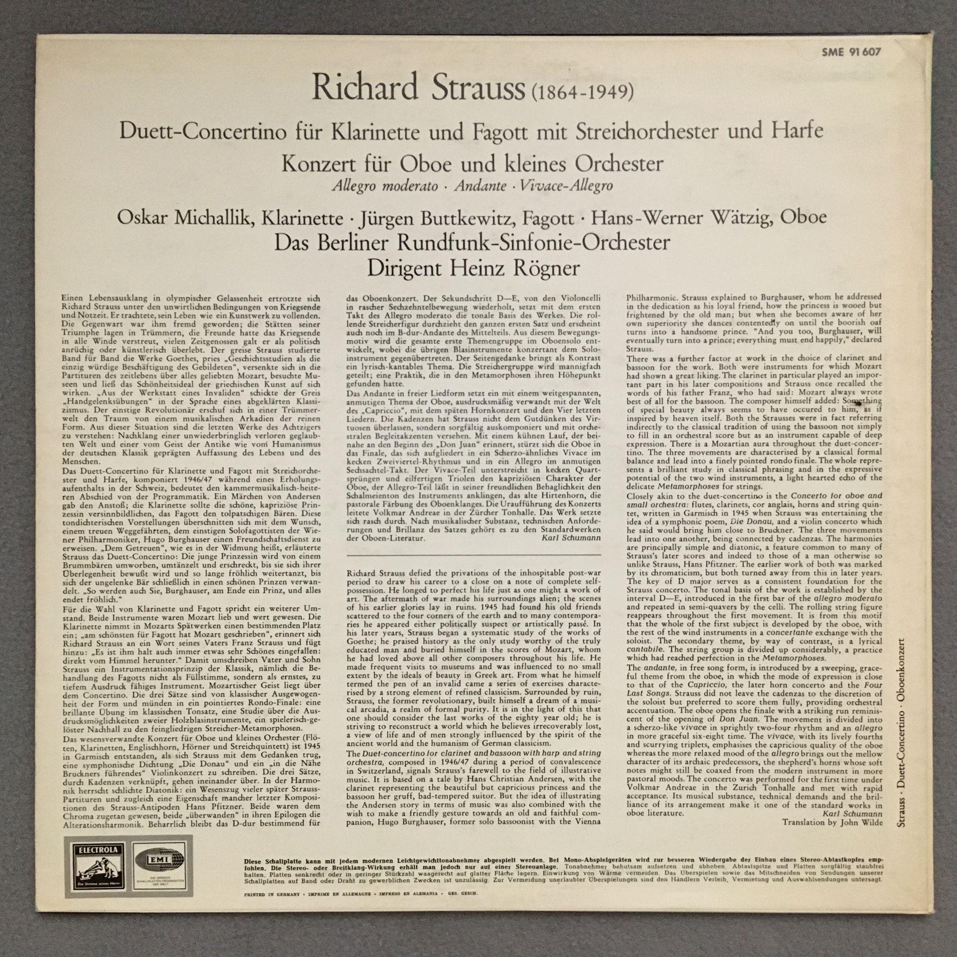 M882 R. Strauss Concertos Michallik Wätzig Rögner Electrola w/g SME 91 607 Ster