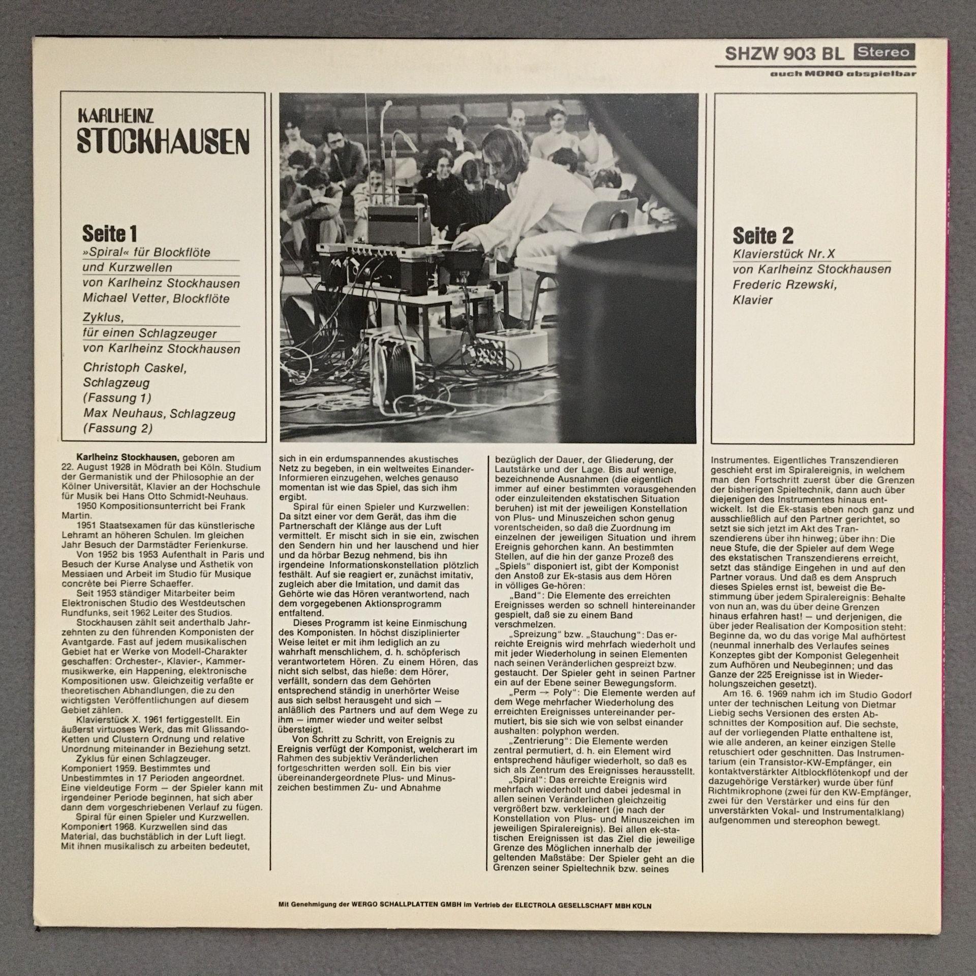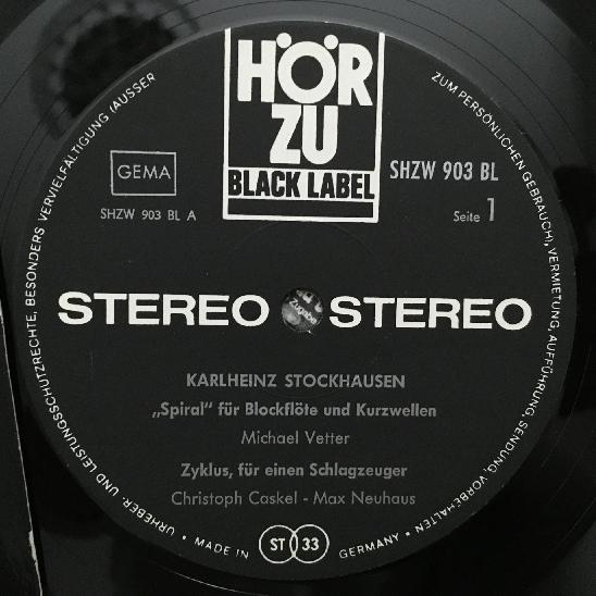 M889 Stockhausen Spiral for Recorder Vetter Neuhaus Wergo WER SHZW 903 BL Stereo