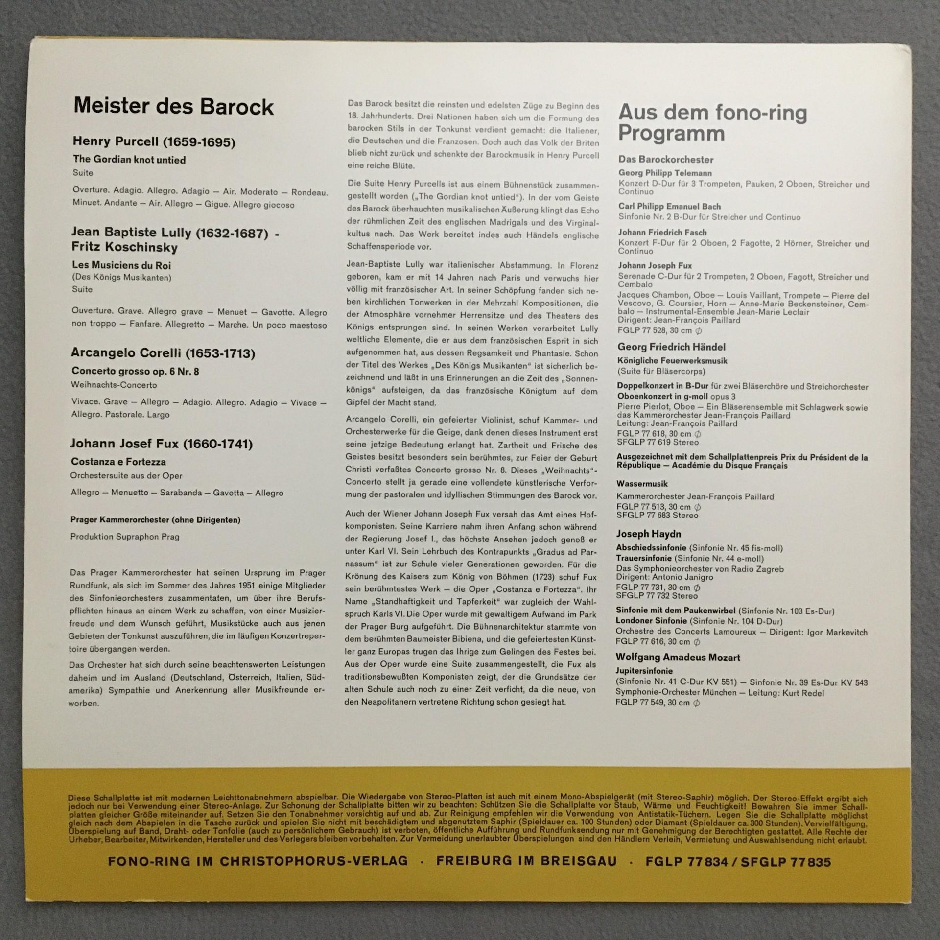 M906 Purcell Lully Overtures Corelli Concerto Grosso Fono-Ring SFGLP 77 835 Ster