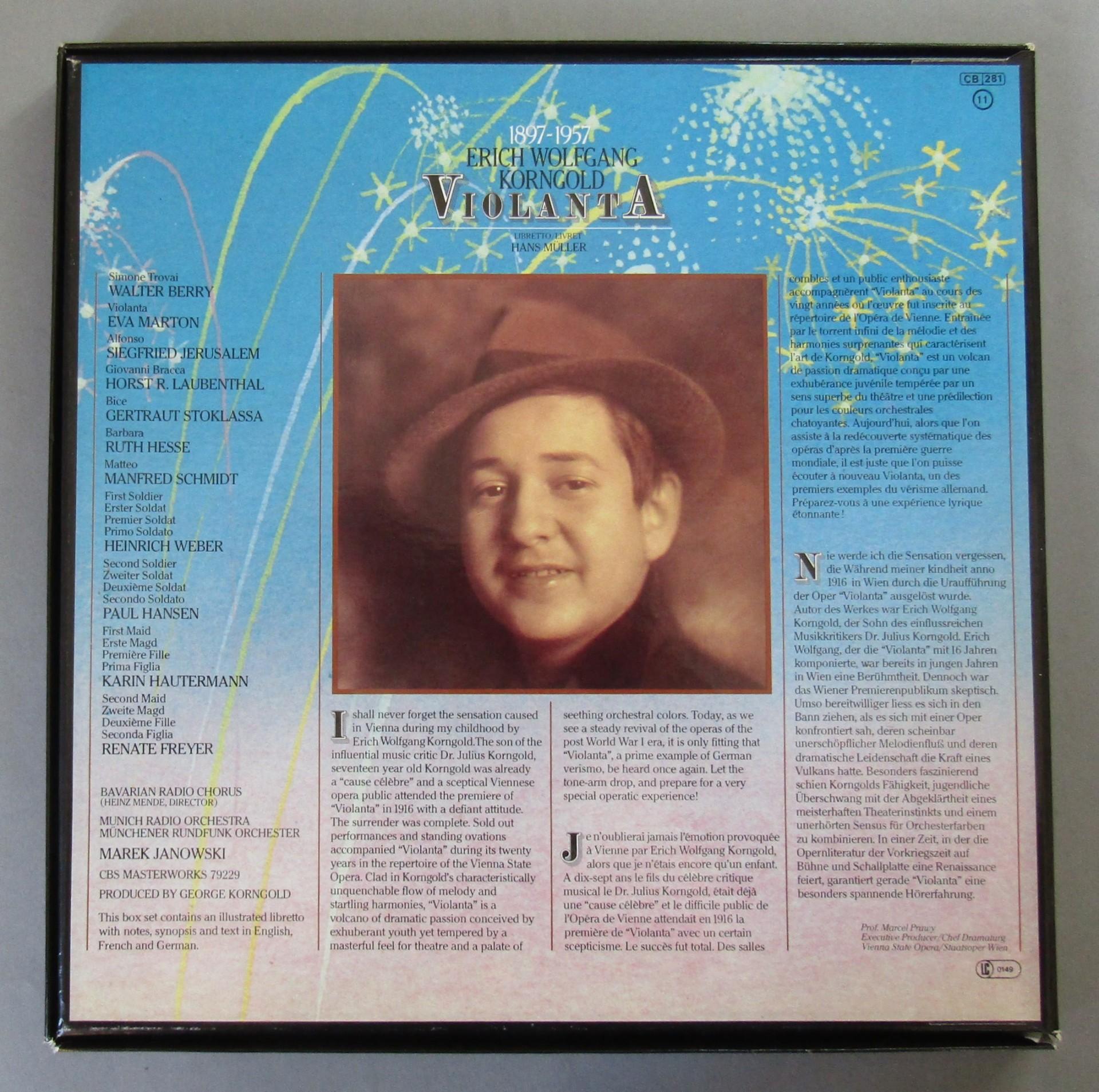 G670 Korngold Violanta Marton Jerusalem Janowski 2LP CBS Masterworks 79229 Stere