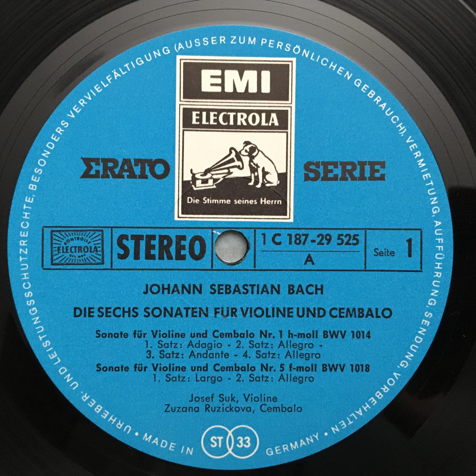D394 Bach Violin & Harpsichord Sonatas Suk Ruzickova 2LP EMI 1 C 187 29525/26 St