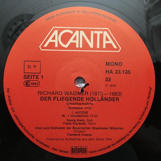 D395 Wagner The Flying Dutchman Hotter Krauss 3LP Acanta HA 23 135/37