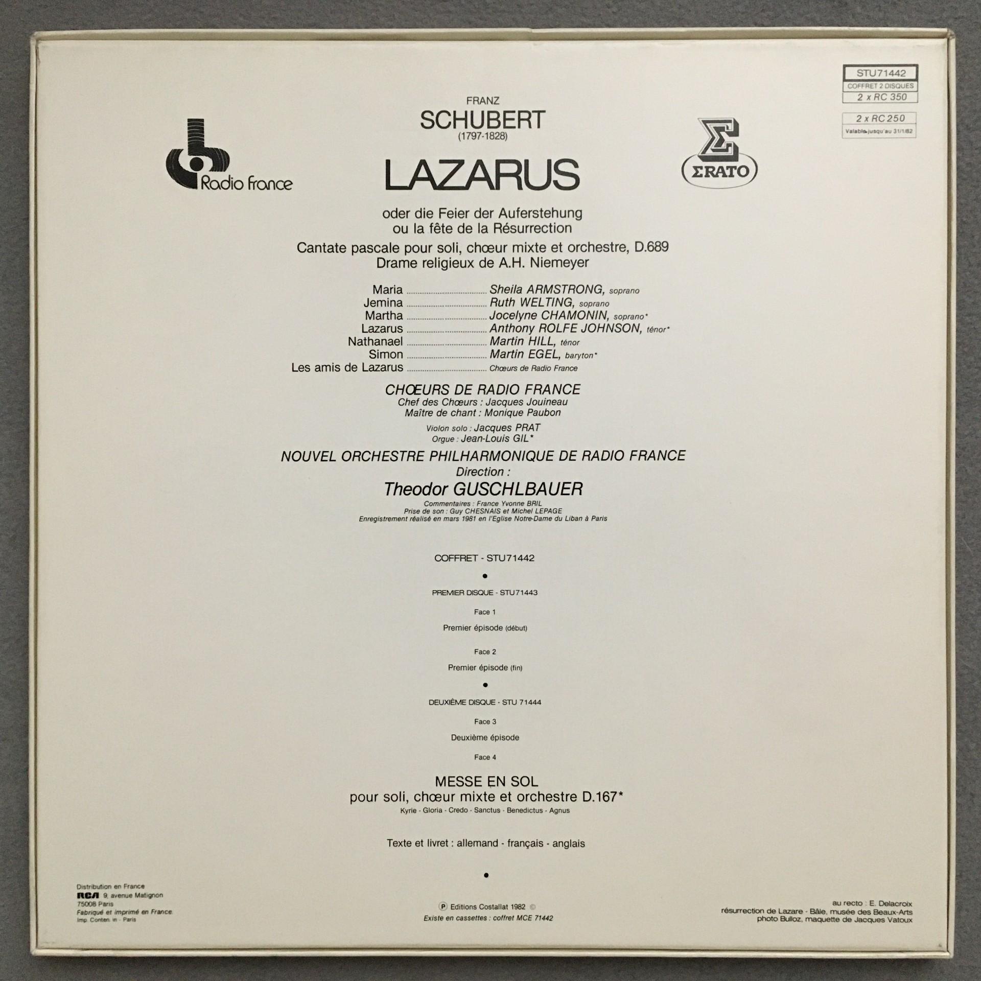 D398 Schubert Lazarus Mass Armstrong Guschlbauer 2LP Erato STU 71442 Stereo