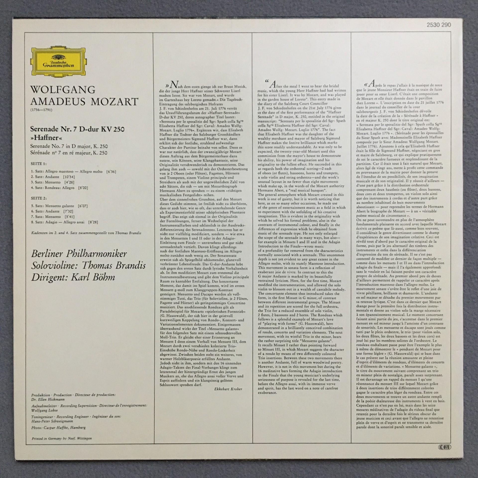 M926 Mozart Serenade No.7 Brandis Bohm DGG 2530 290 Stereo